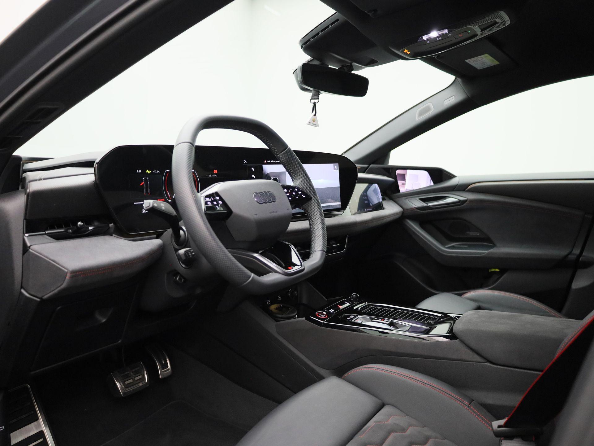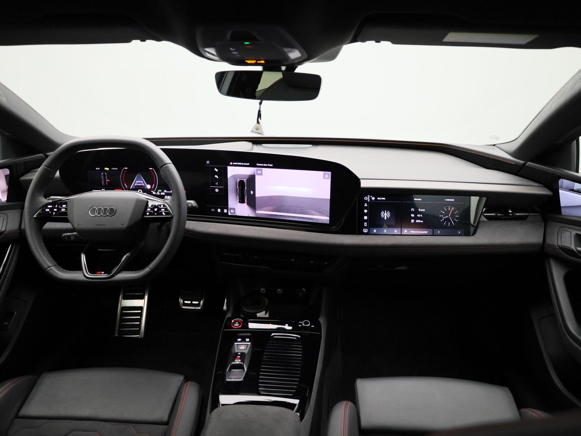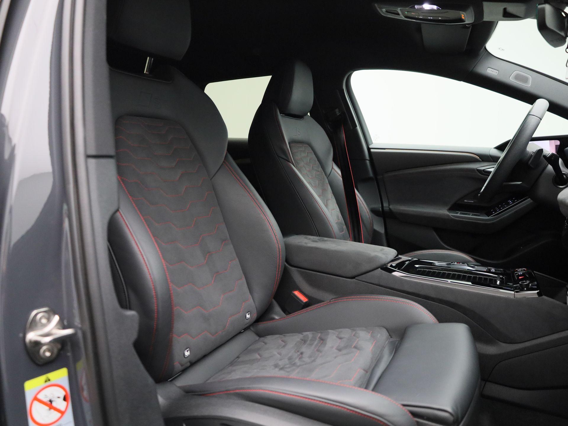 S-interieur met sportstoelen en zwarte Dinamica-microvezel en lederen bekleding met Audi Sport rode
