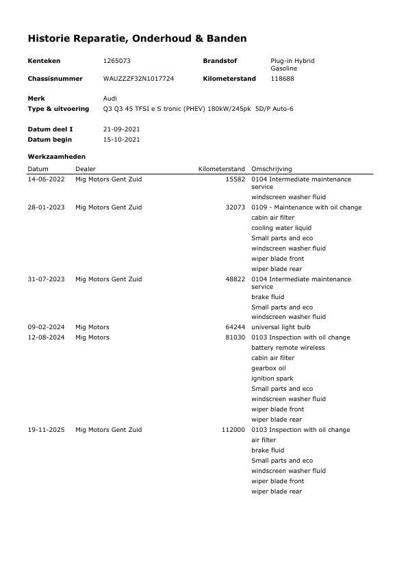Volledige dealeronderhoudshistorie beschikbaar