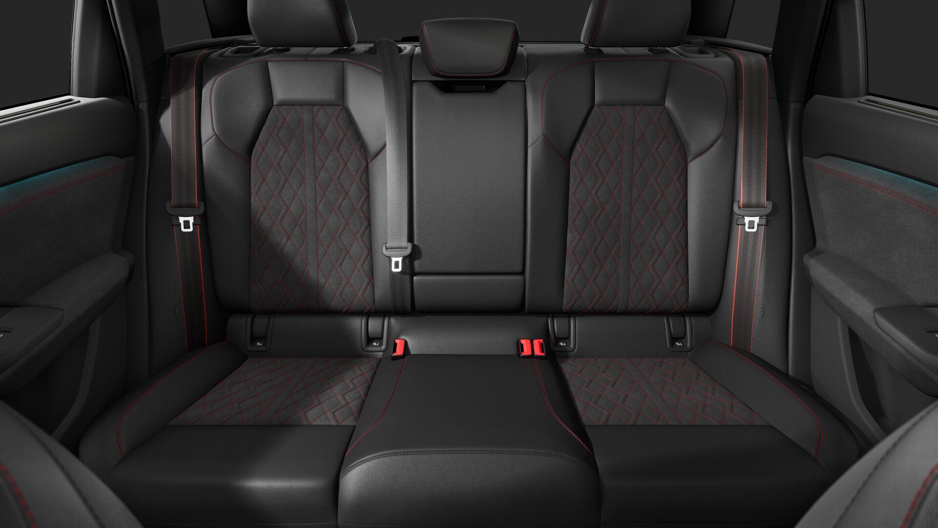 S-interieur met sportstoelen en zwarte Dinamica-microvezel en lederen bekleding met Audi Sport rode