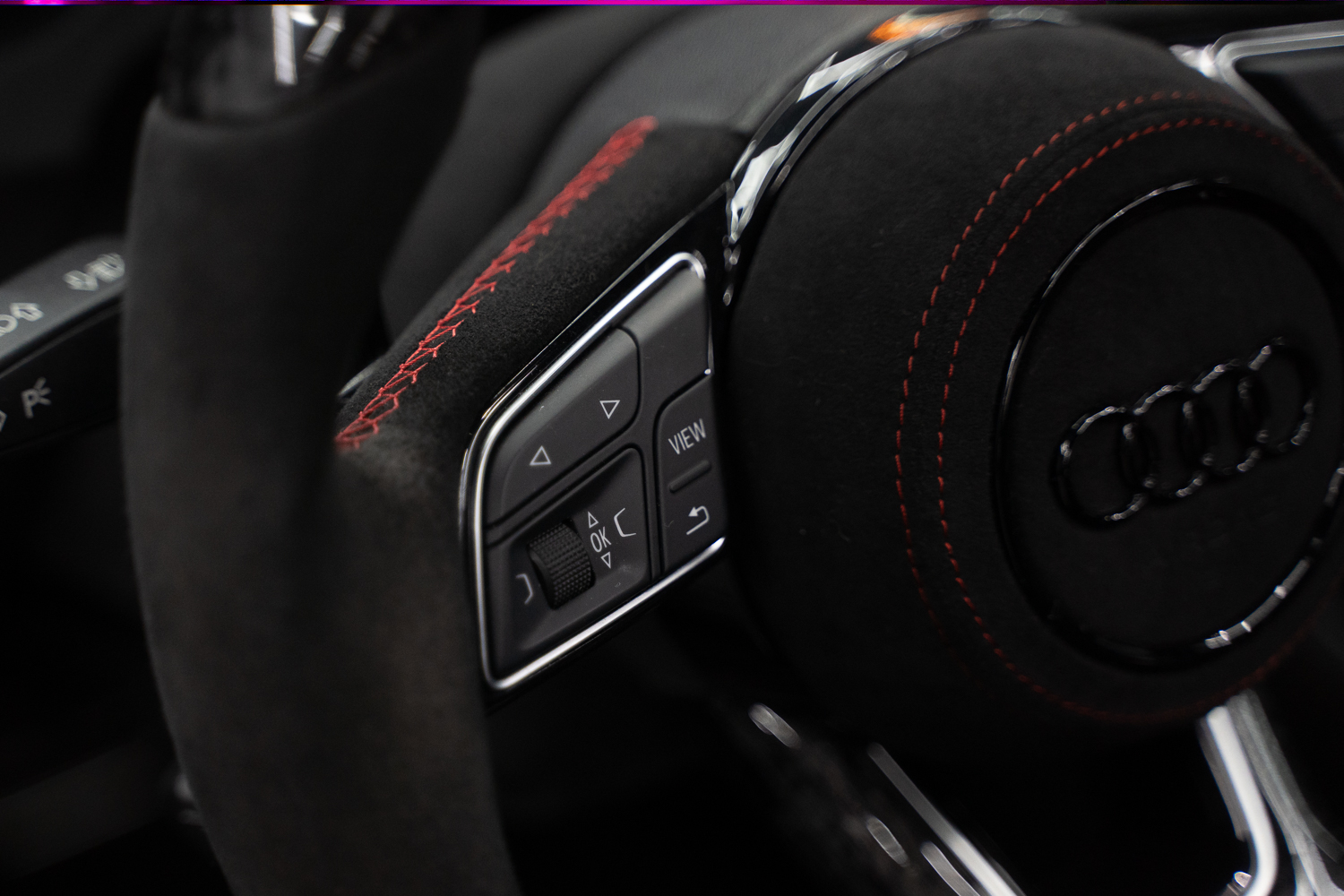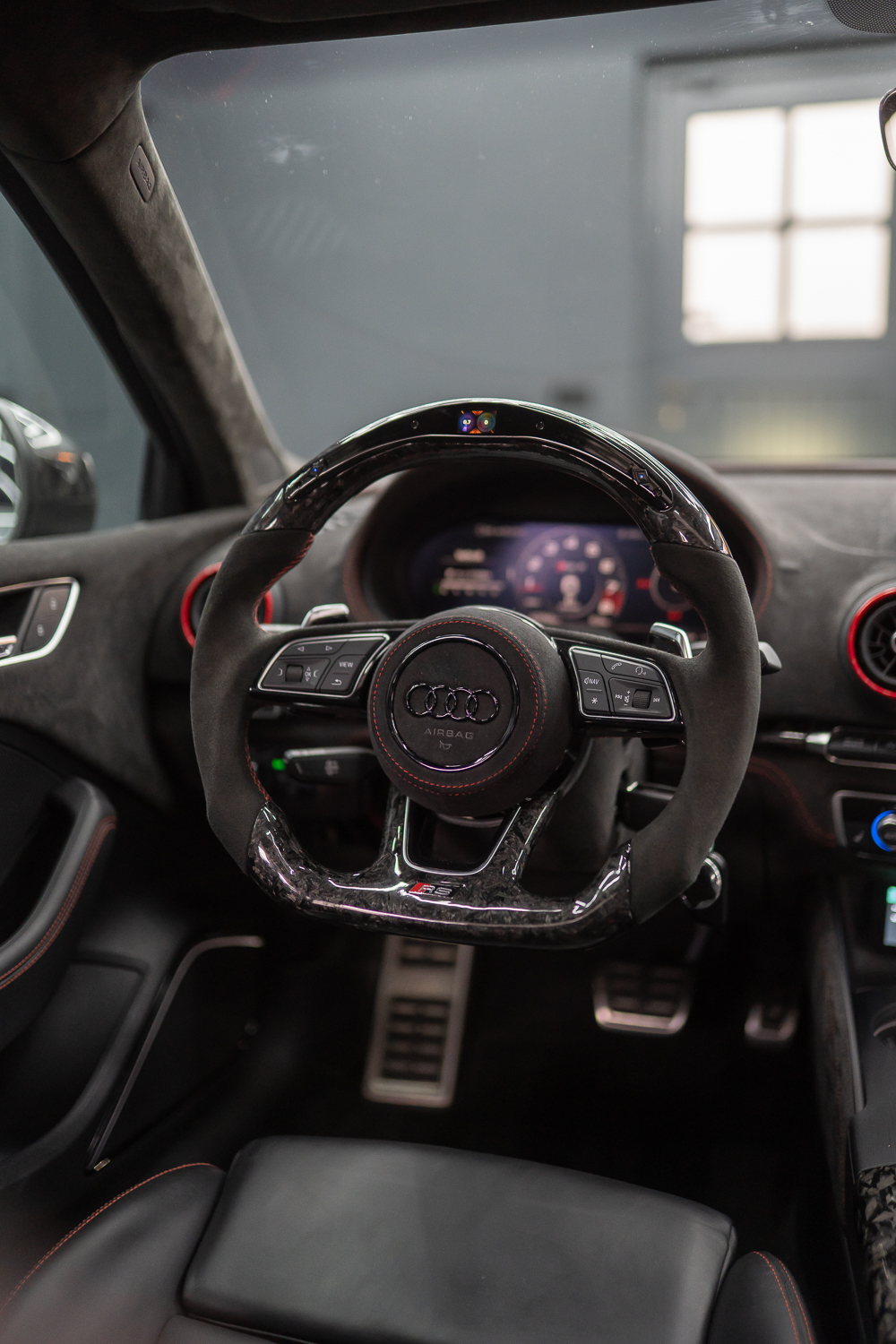 Custom forged carbon/alcantara stuur met LED-indicatoren