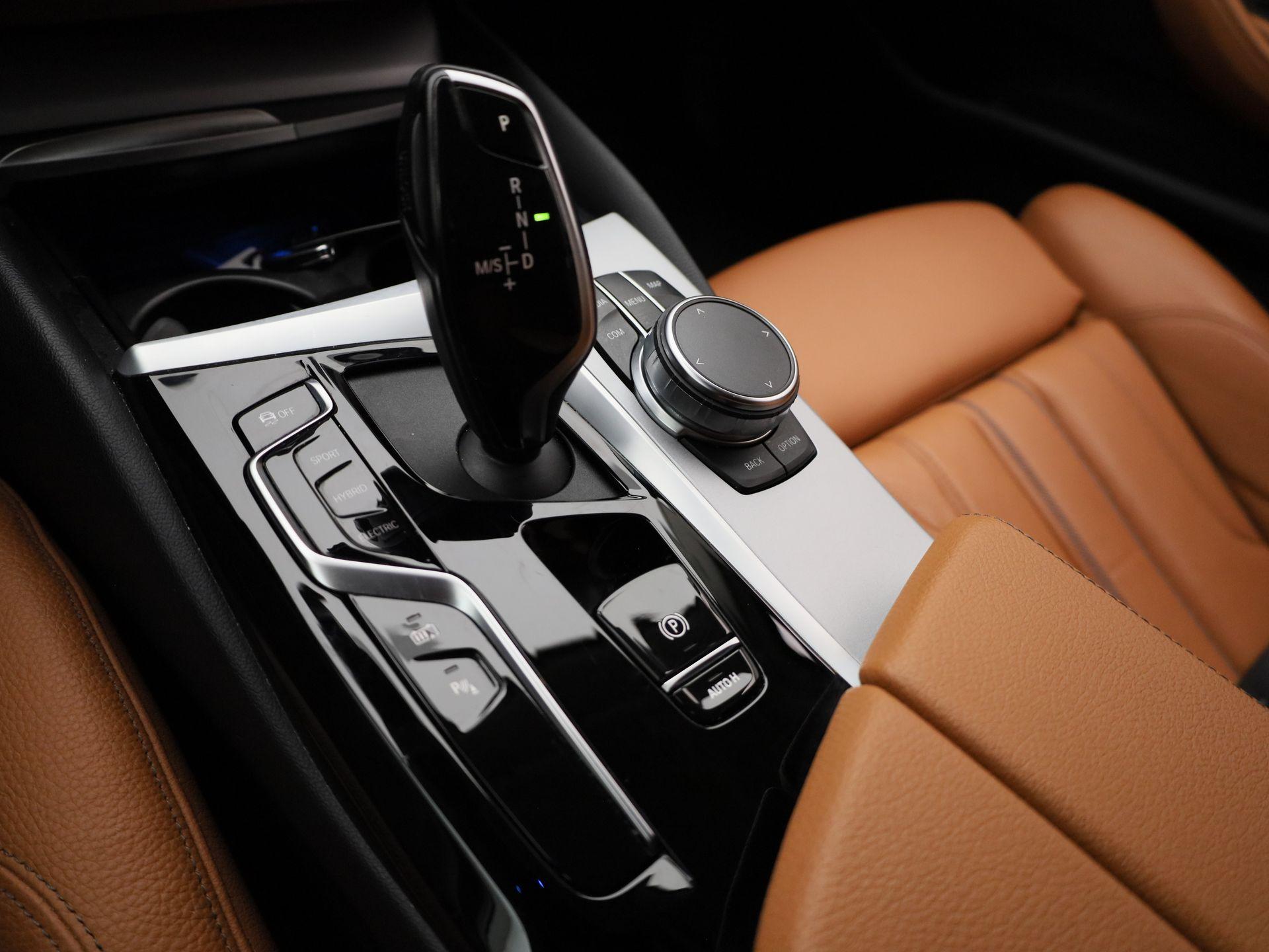 Luxe licht metaal look afwerking op de pookknop, licht metaal afwerking op de centrale vloerconsole,