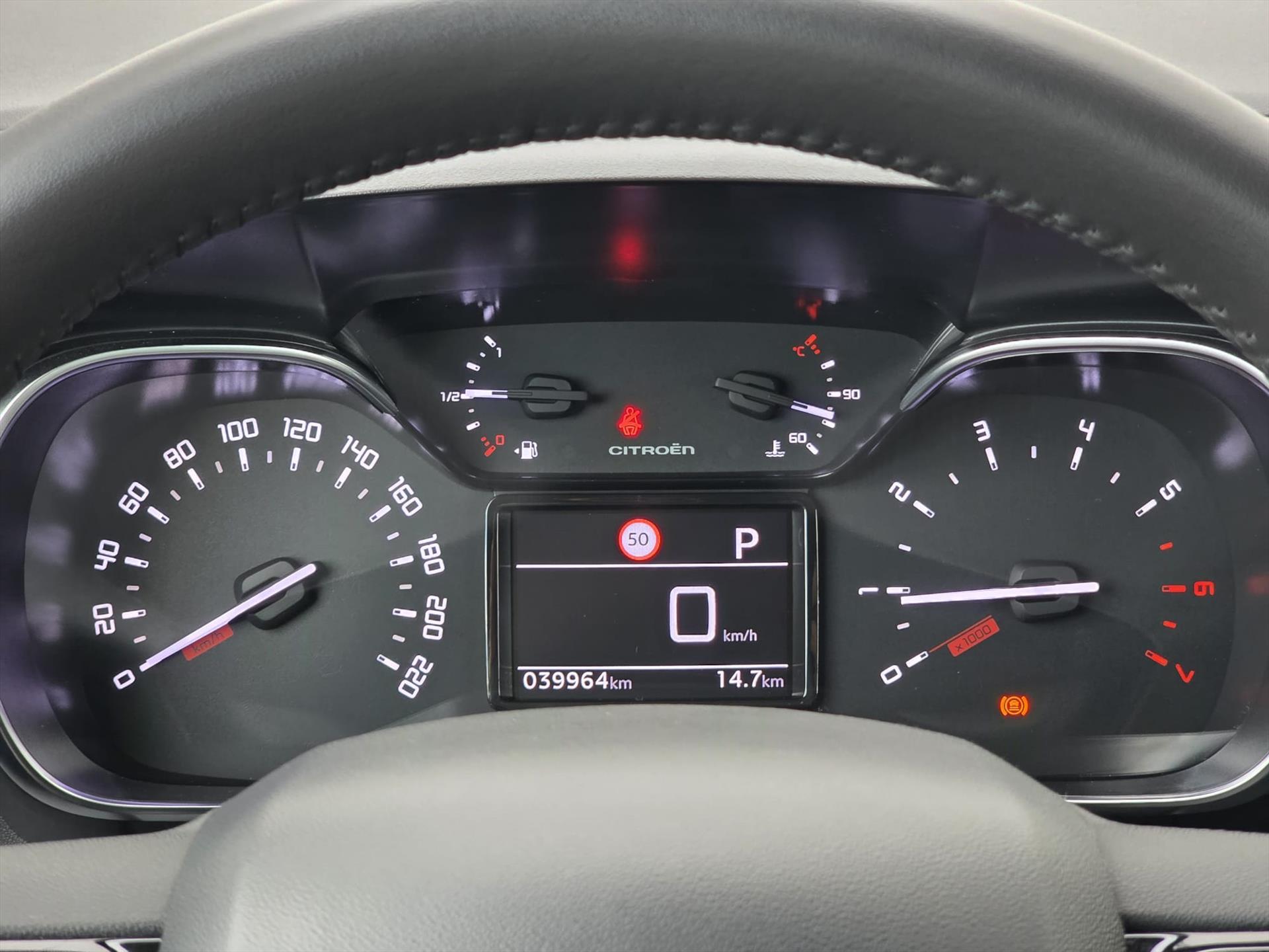 Instrumentenpaneel voorzien van chromen afwerking en een LCD scherm tussen de meters