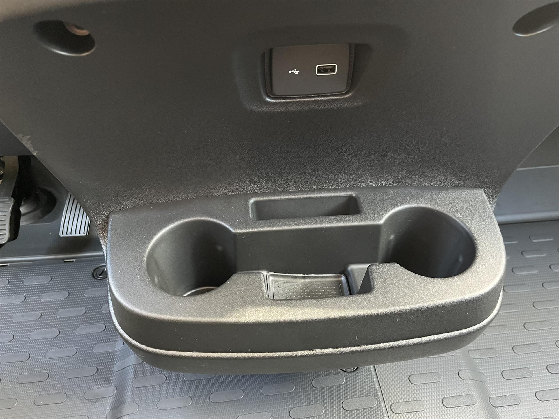 Centraal geplaatst open opbergvak inclusief bekerhouders