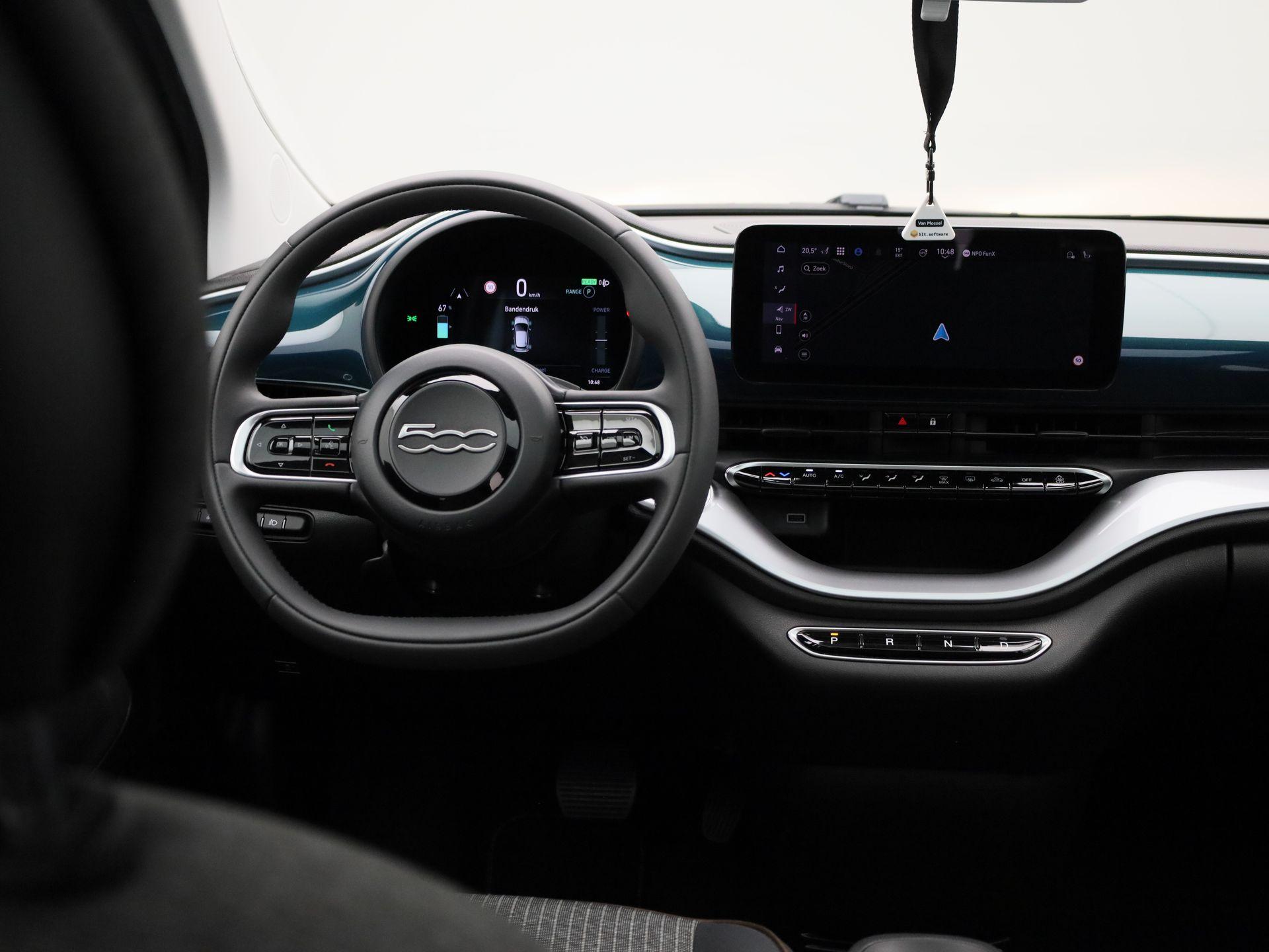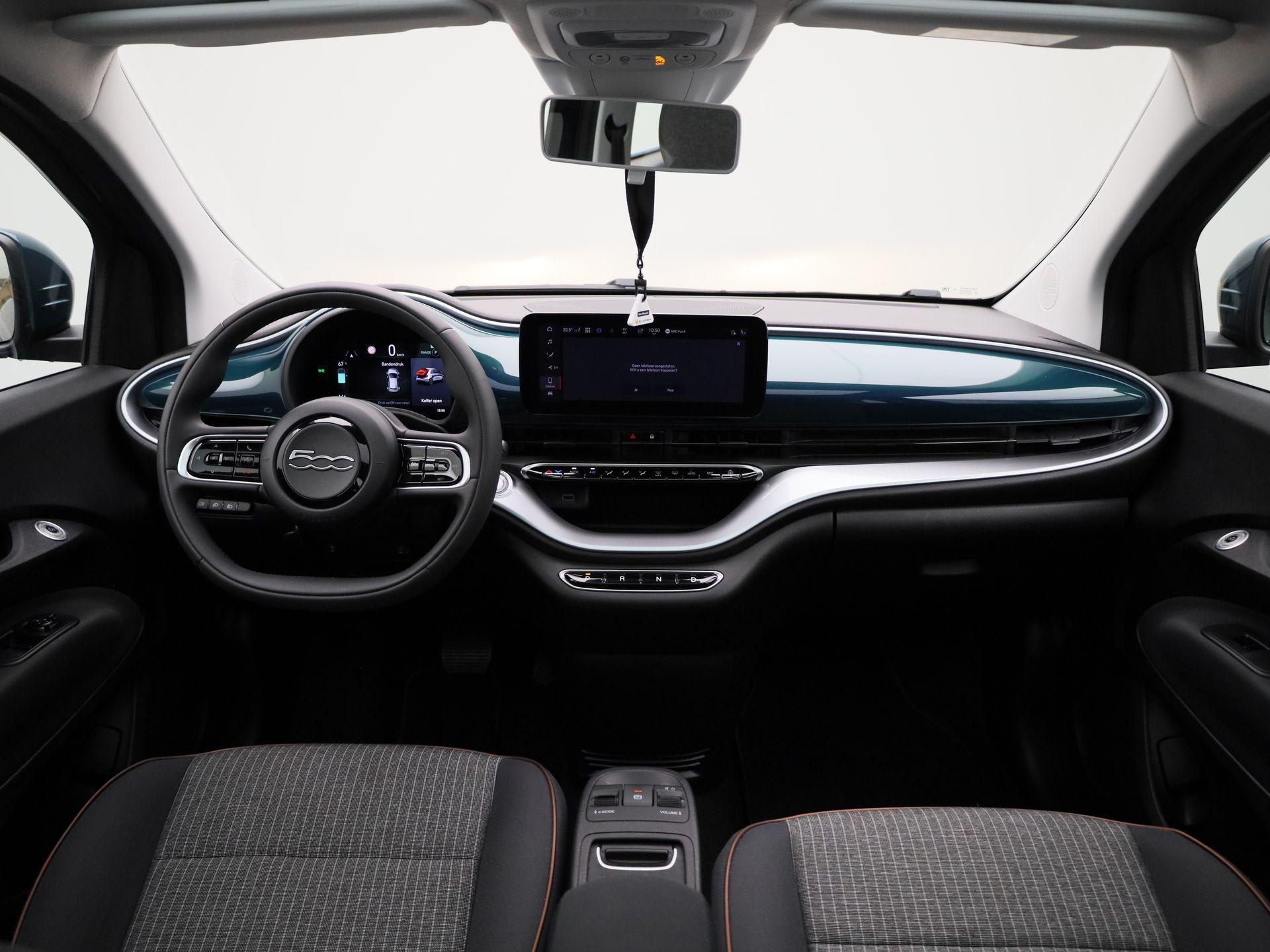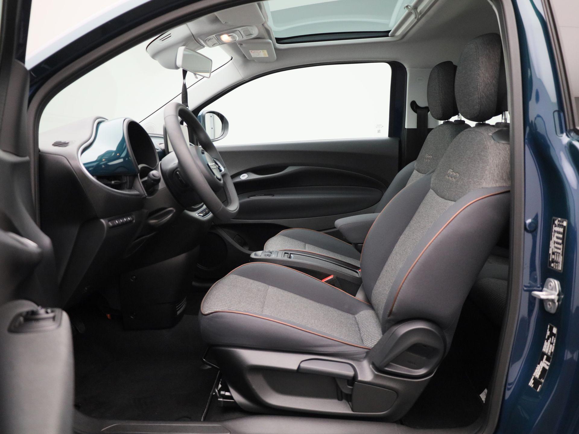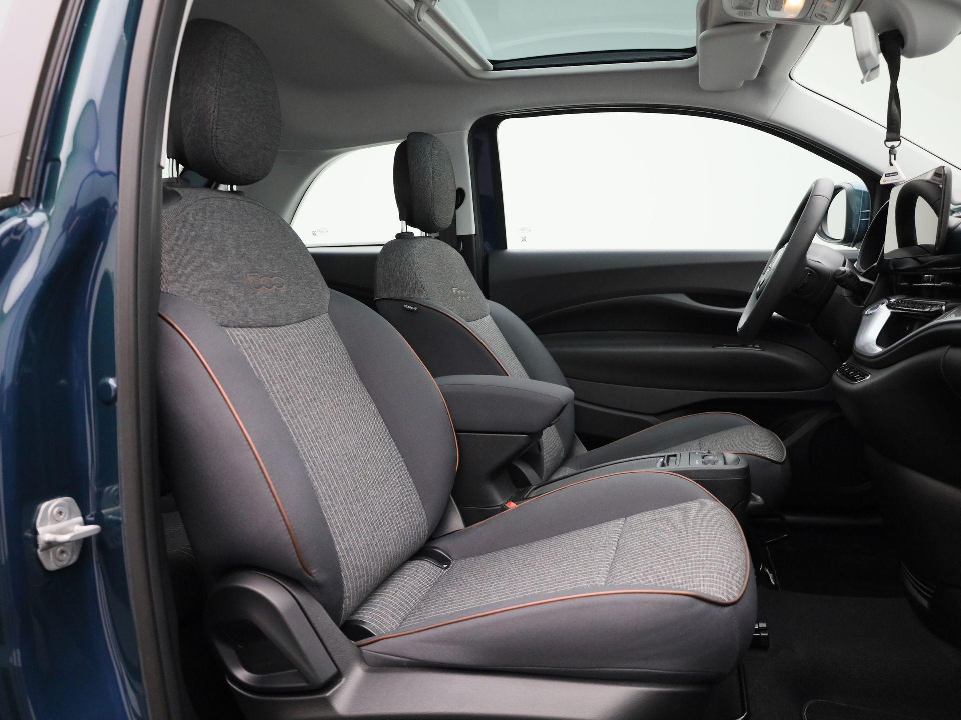 500e 42 kWh Icon | Climate Control / ECC | Panoramadak | Licht metalen velgen 16 inch | Cruise control | | Navigatie | Stoelverwarming | Achteruitrijcamera |