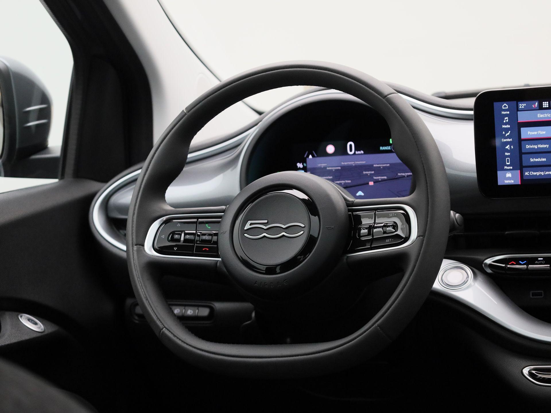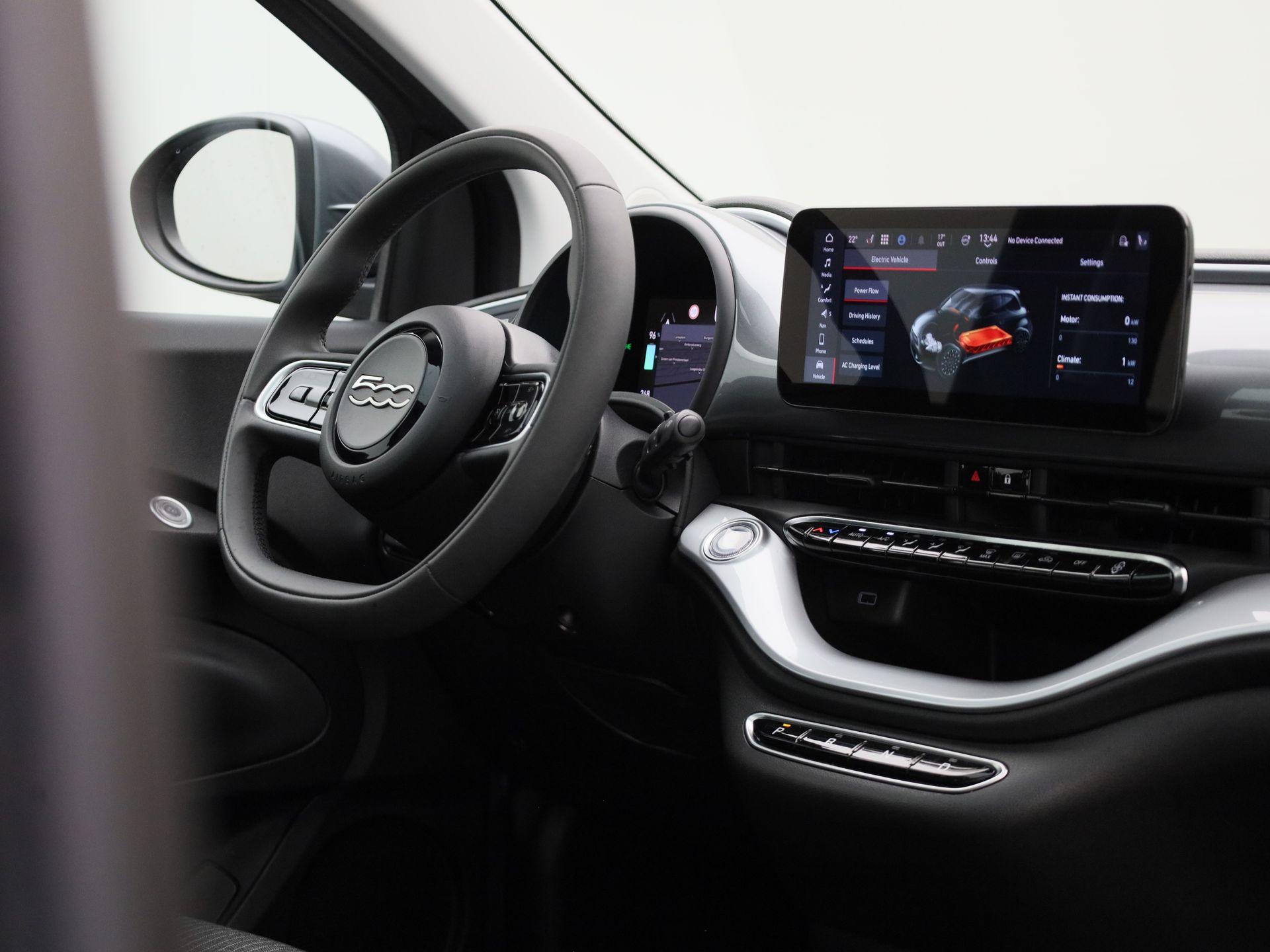 500e 42 kWh Icon | PANO | Achteruitrijcamera | Stoelverwarming | Cruise Control | Apple Carplay / Android Auto |