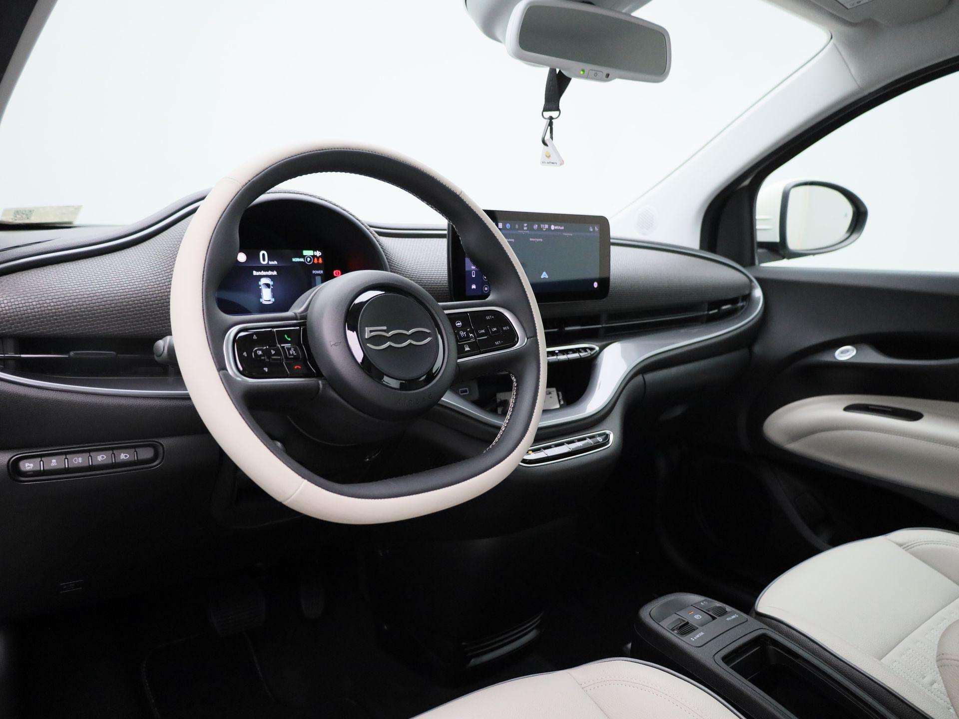 500e 42 kWh La Prima AUTOMAAT | LEDER | ADAPTIEVE CRUISE | CAMERA | NAVIGATIE | WINTERPAKKET | LMV | CLIMA |