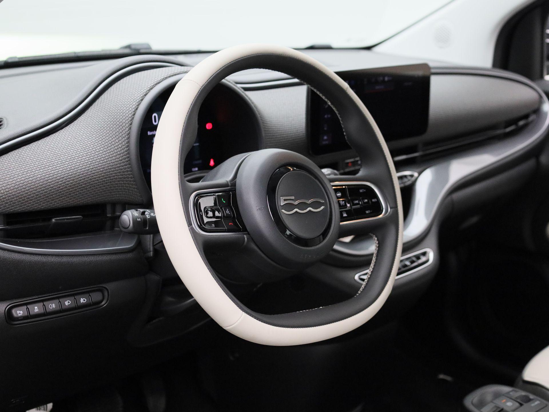 500e 42 kWh La Prima | Achteruitrijcamera | Adaptive Cruise Control | Canvas Open Dak Elektrisch | CCS | Draadloos Opladen | Leder | Stoelverwarming |