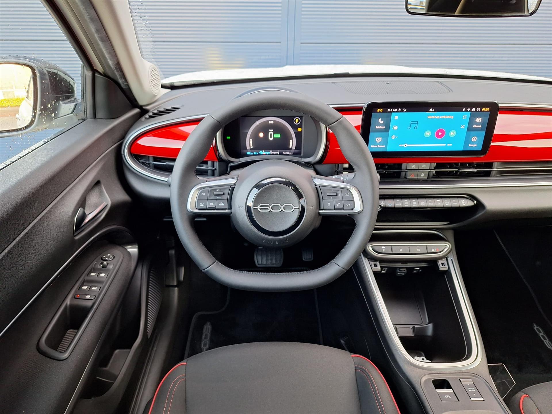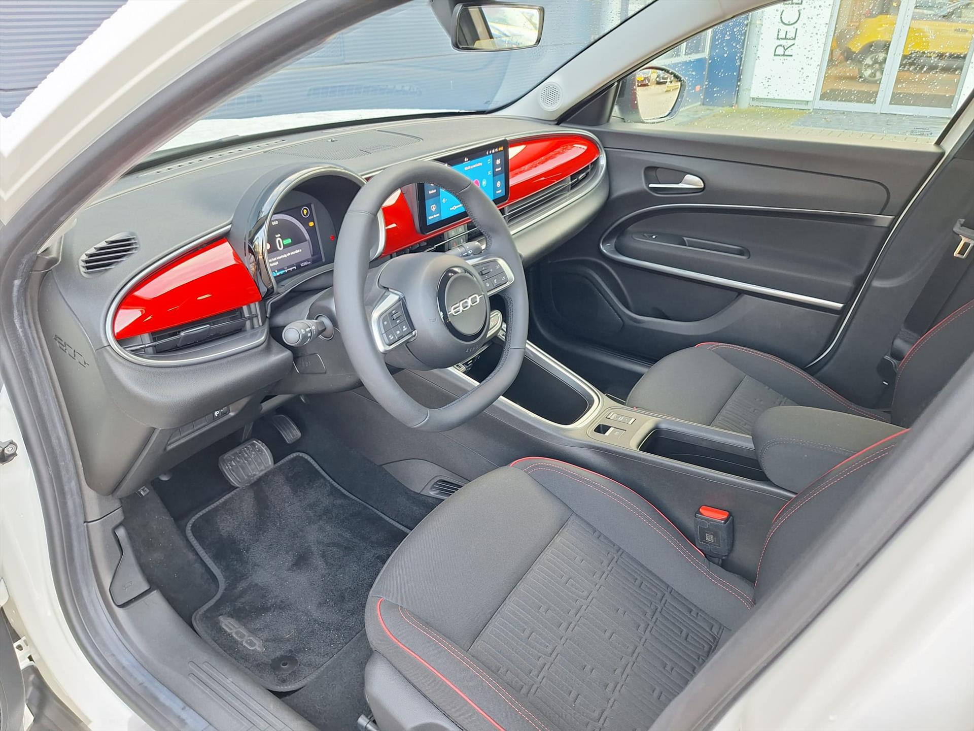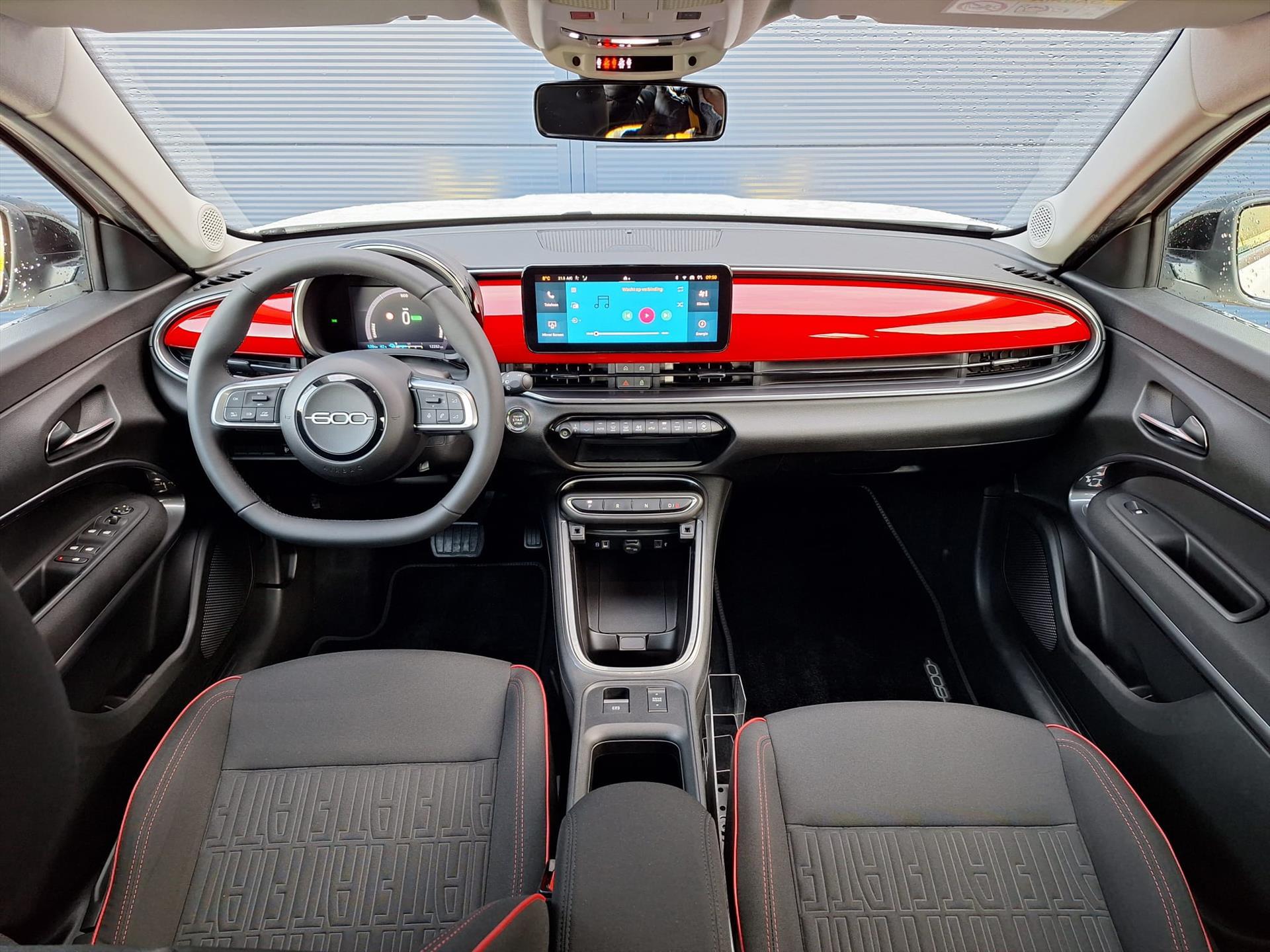 Zwarte stoelbekleding met roodstiksel incl FIAT logo