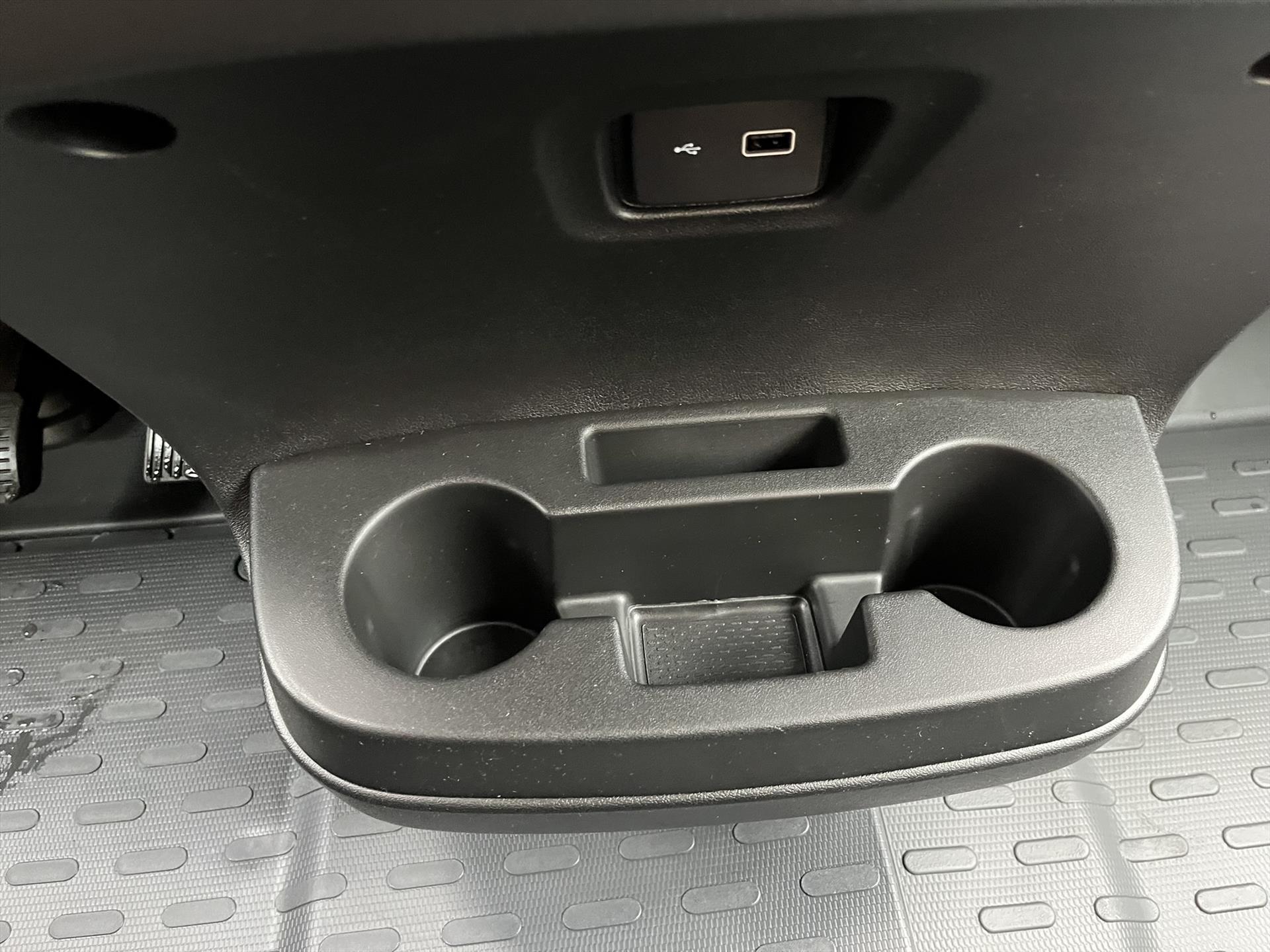 Centraal geplaatst open opbergvak inclusief bekerhouders