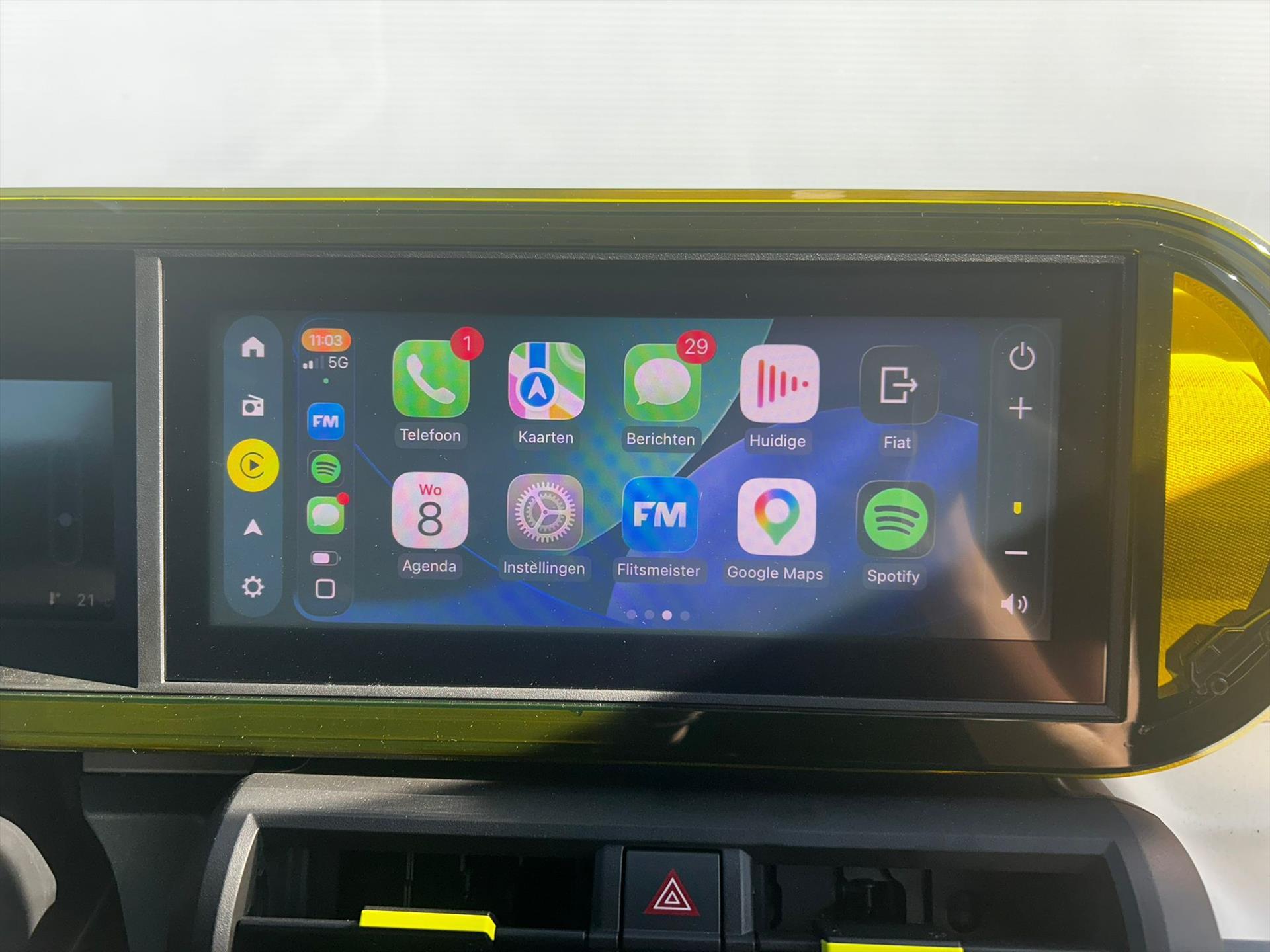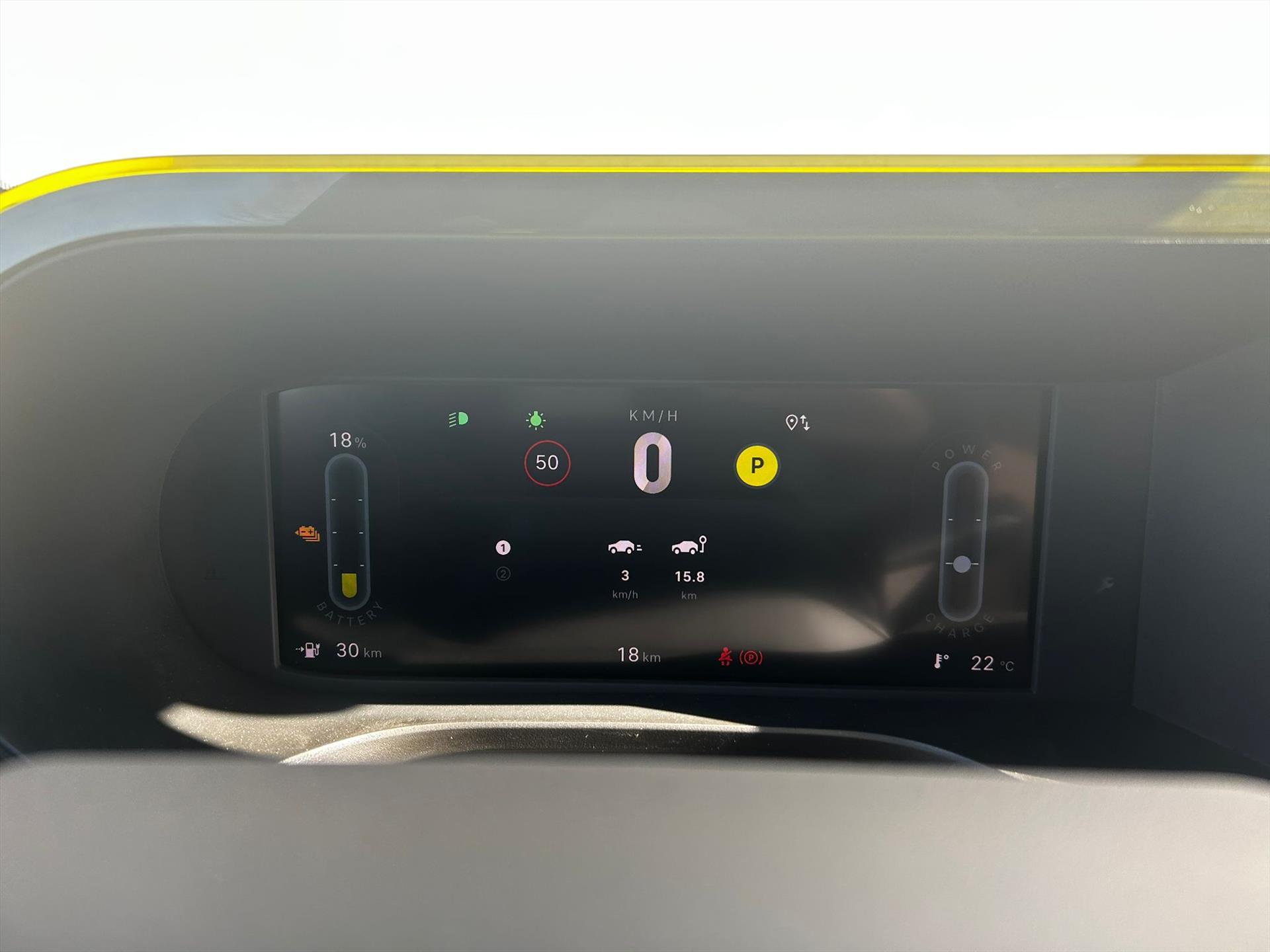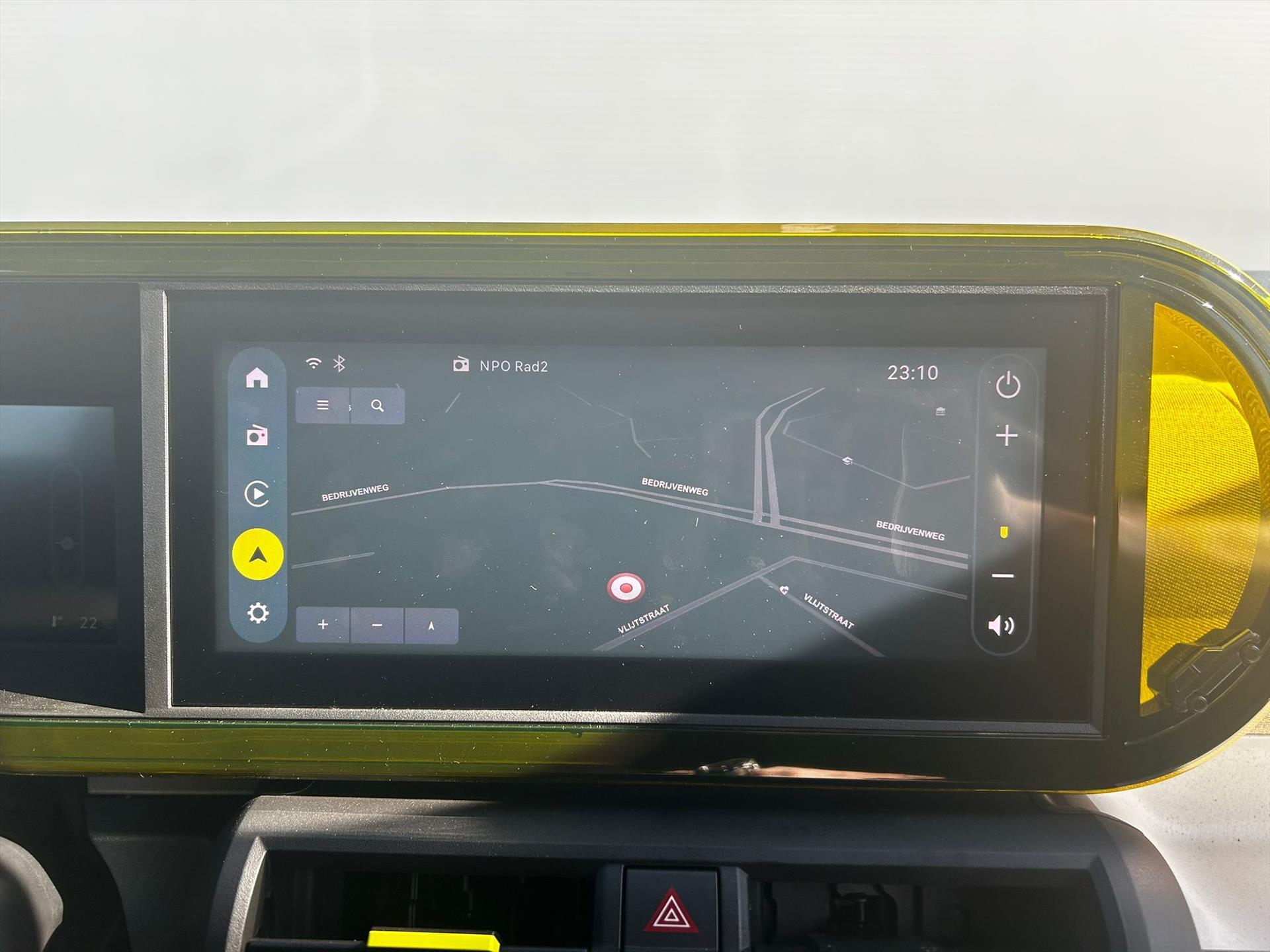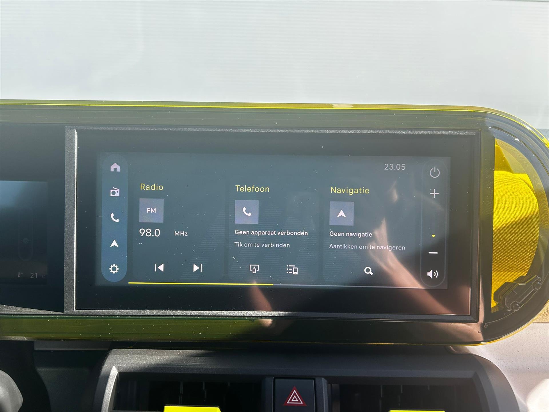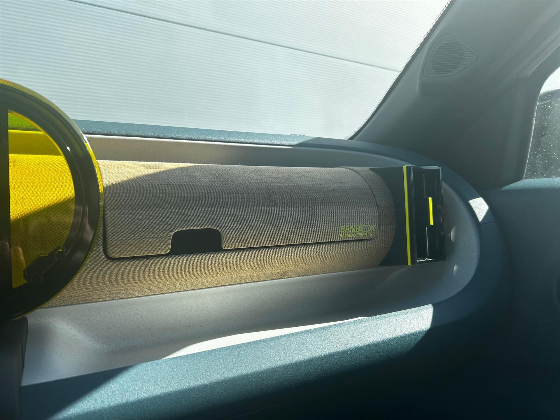 Doorschijnend gele omlijsting rond het touchscreen, geïnspireerd door Lingotto