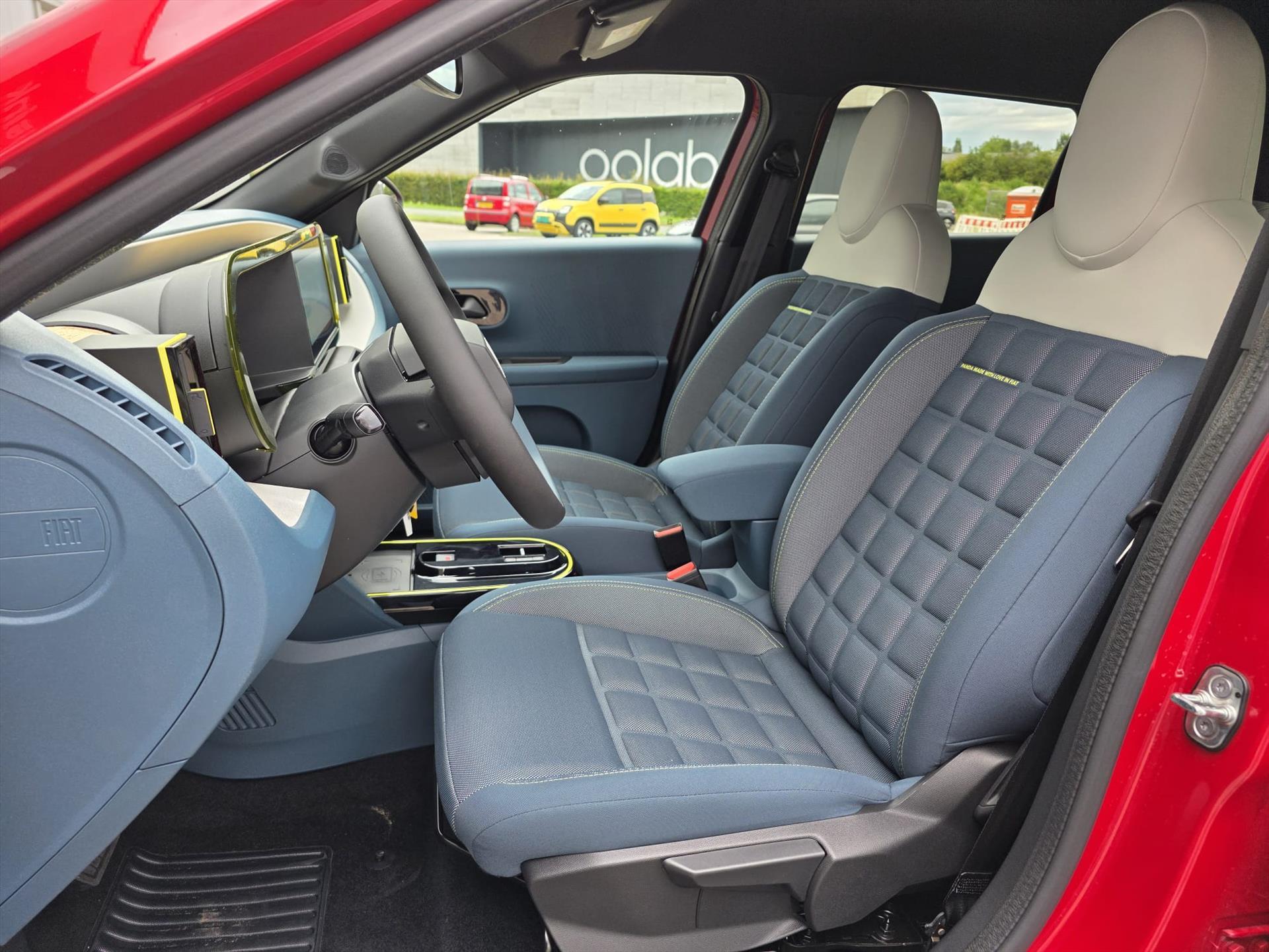 Doorschijnend gele omlijsting rond het touchscreen, geïnspireerd door Lingotto