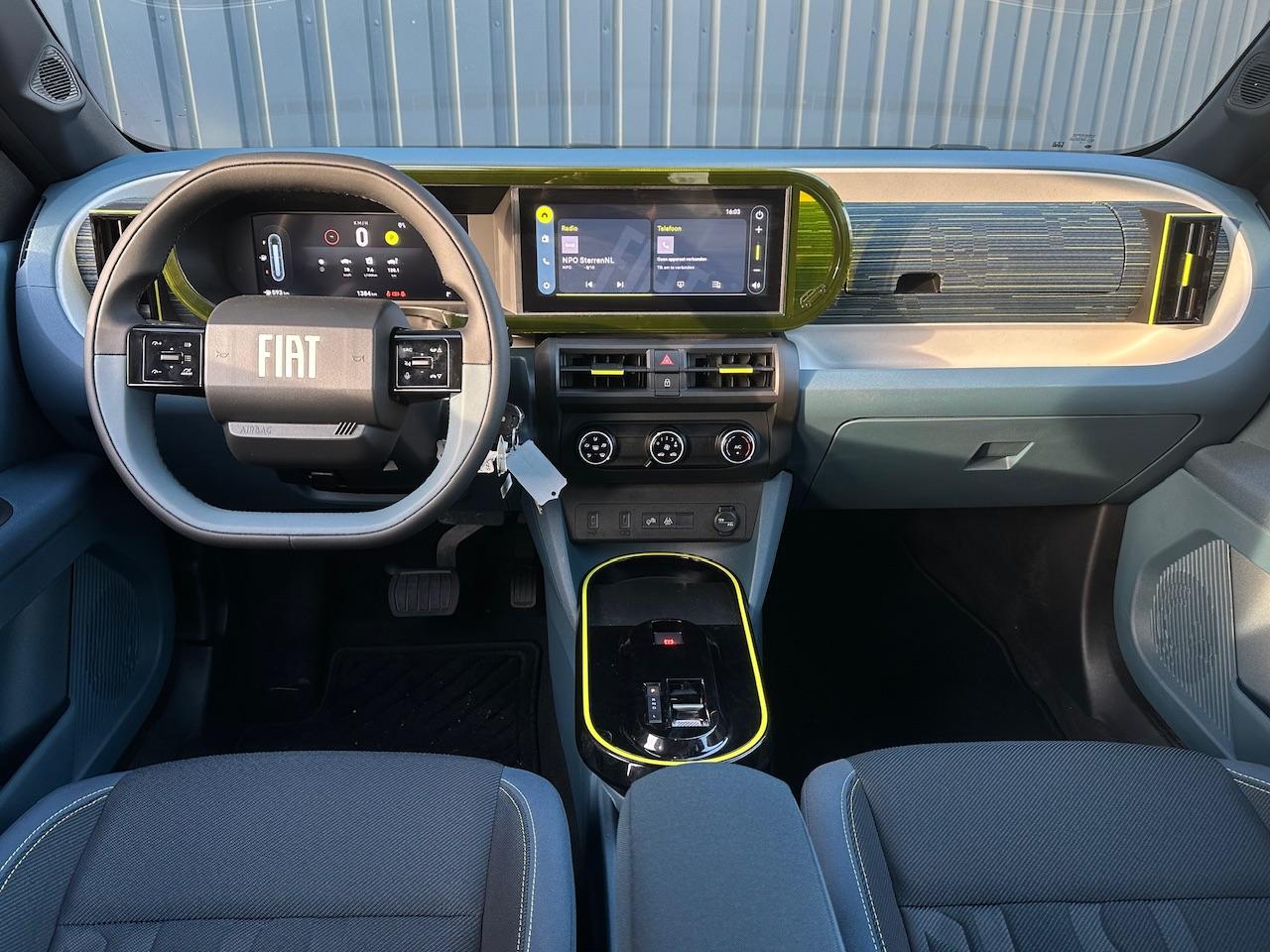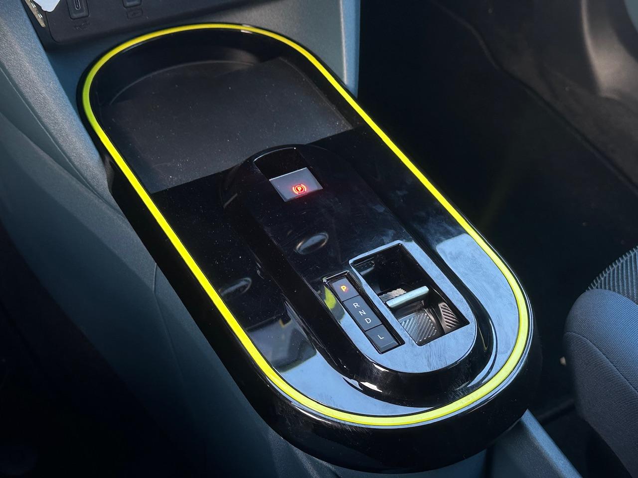 Doorschijnend gele omlijsting rond het touchscreen, geïnspireerd door Lingotto