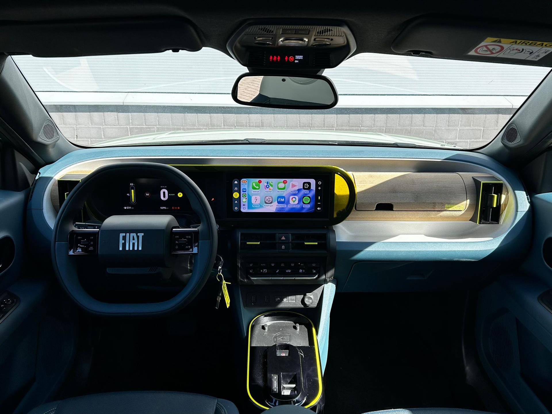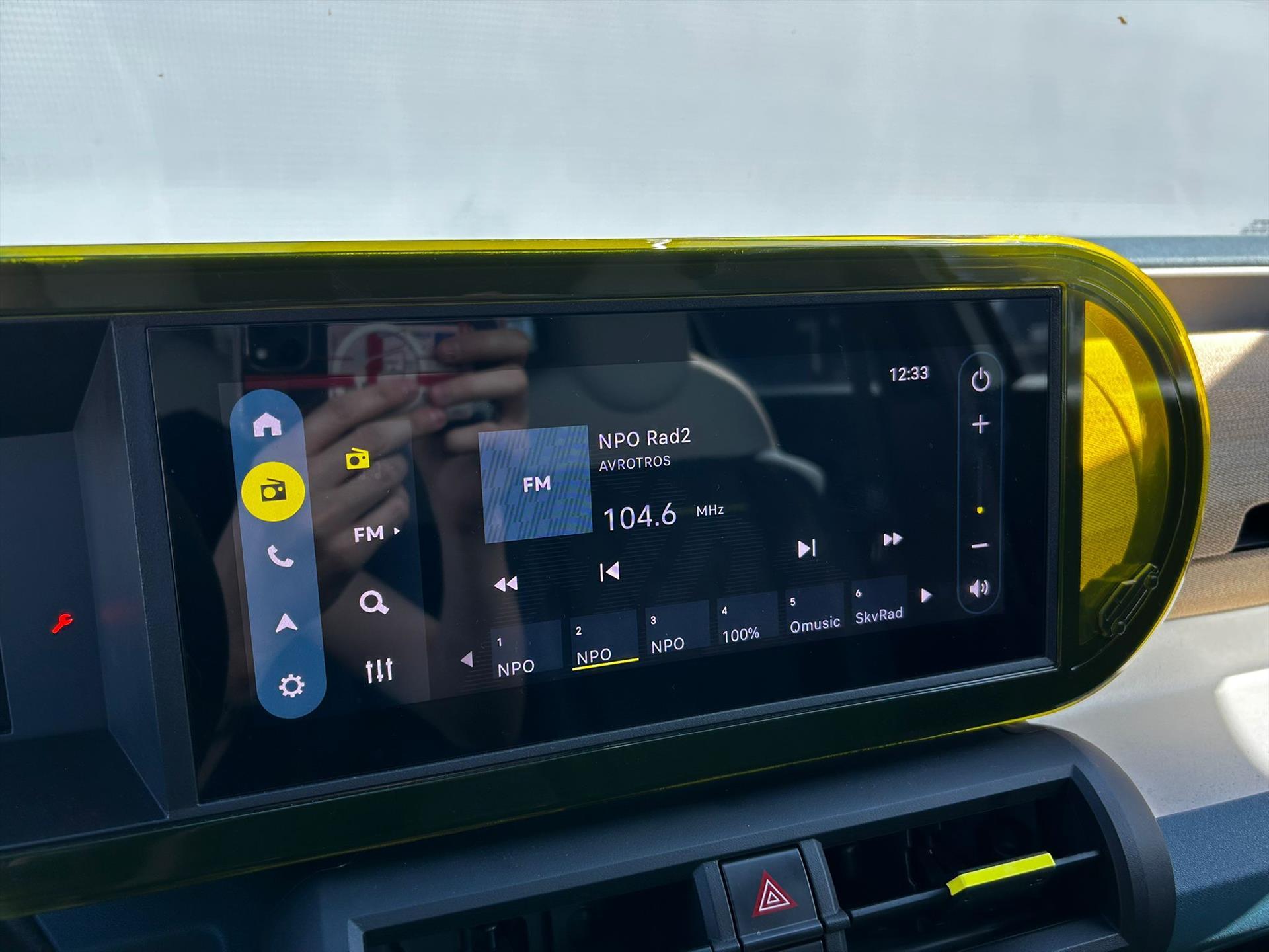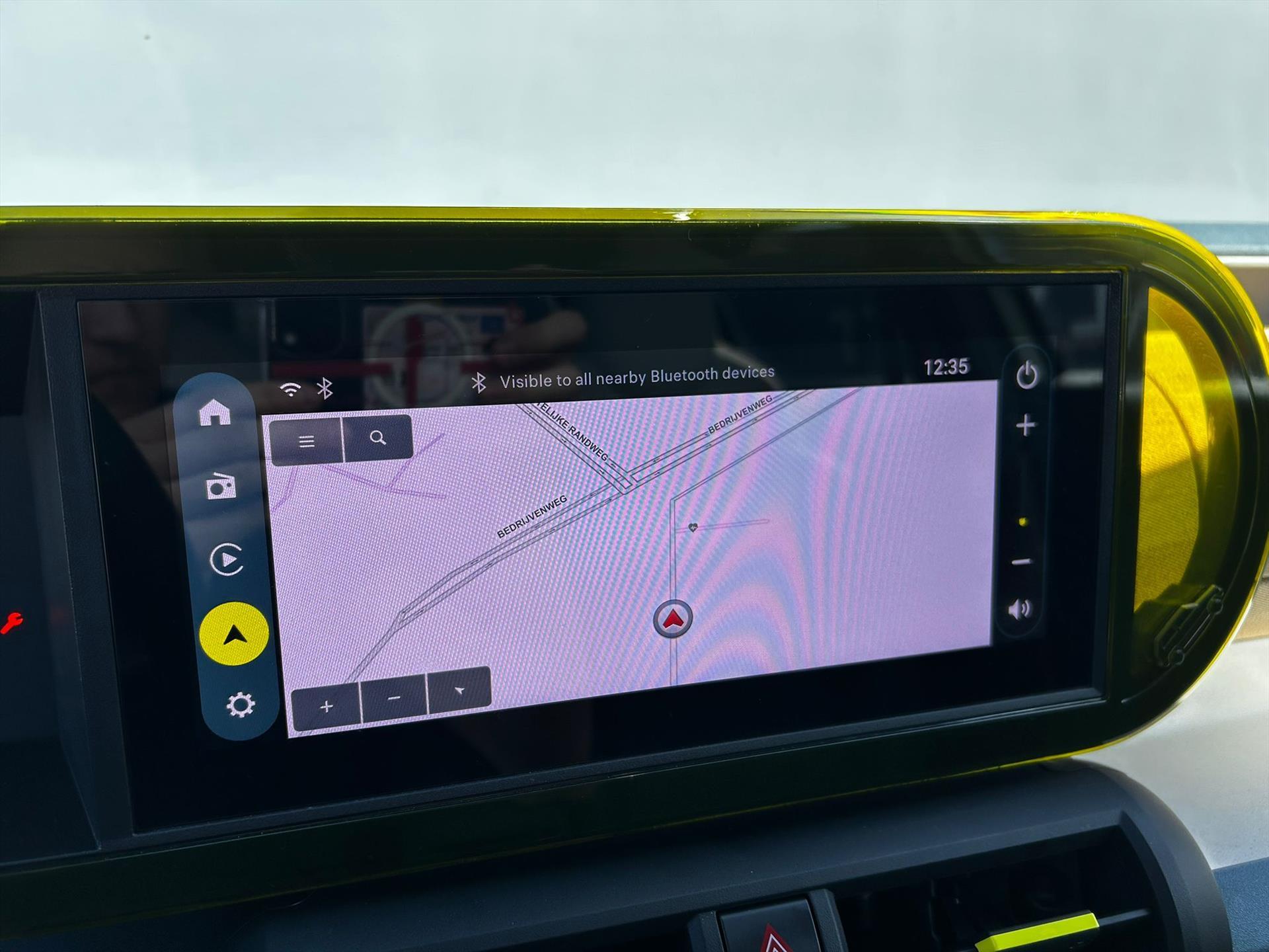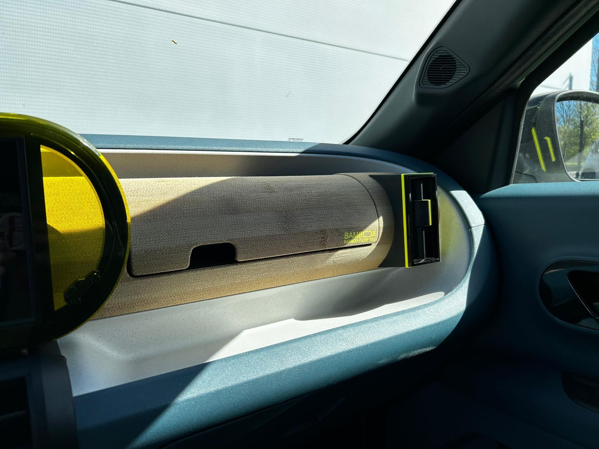 Doorschijnend gele omlijsting rond het touchscreen, geïnspireerd door Lingotto
