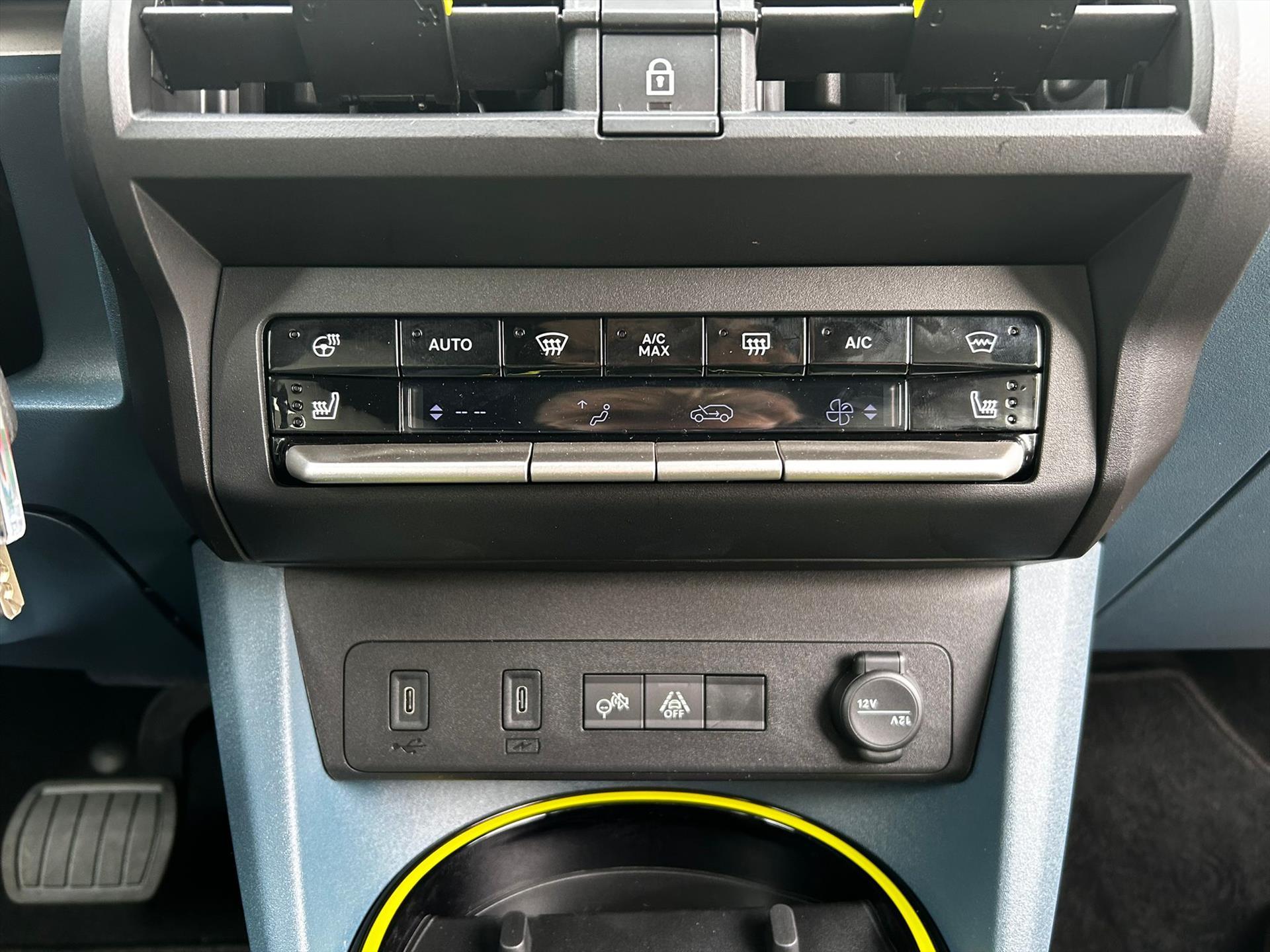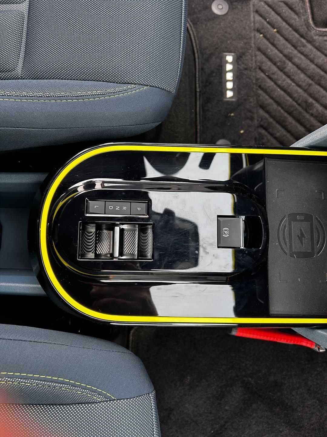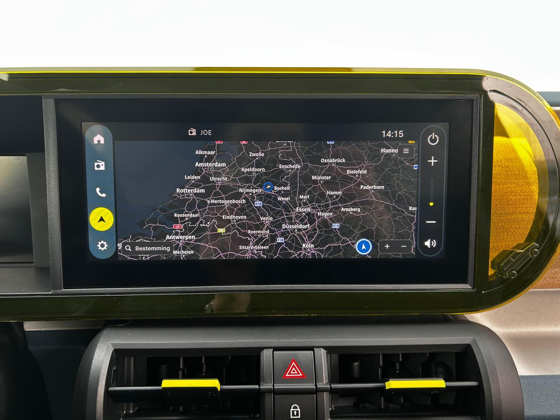 Doorschijnend gele omlijsting rond het touchscreen, geïnspireerd door Lingotto