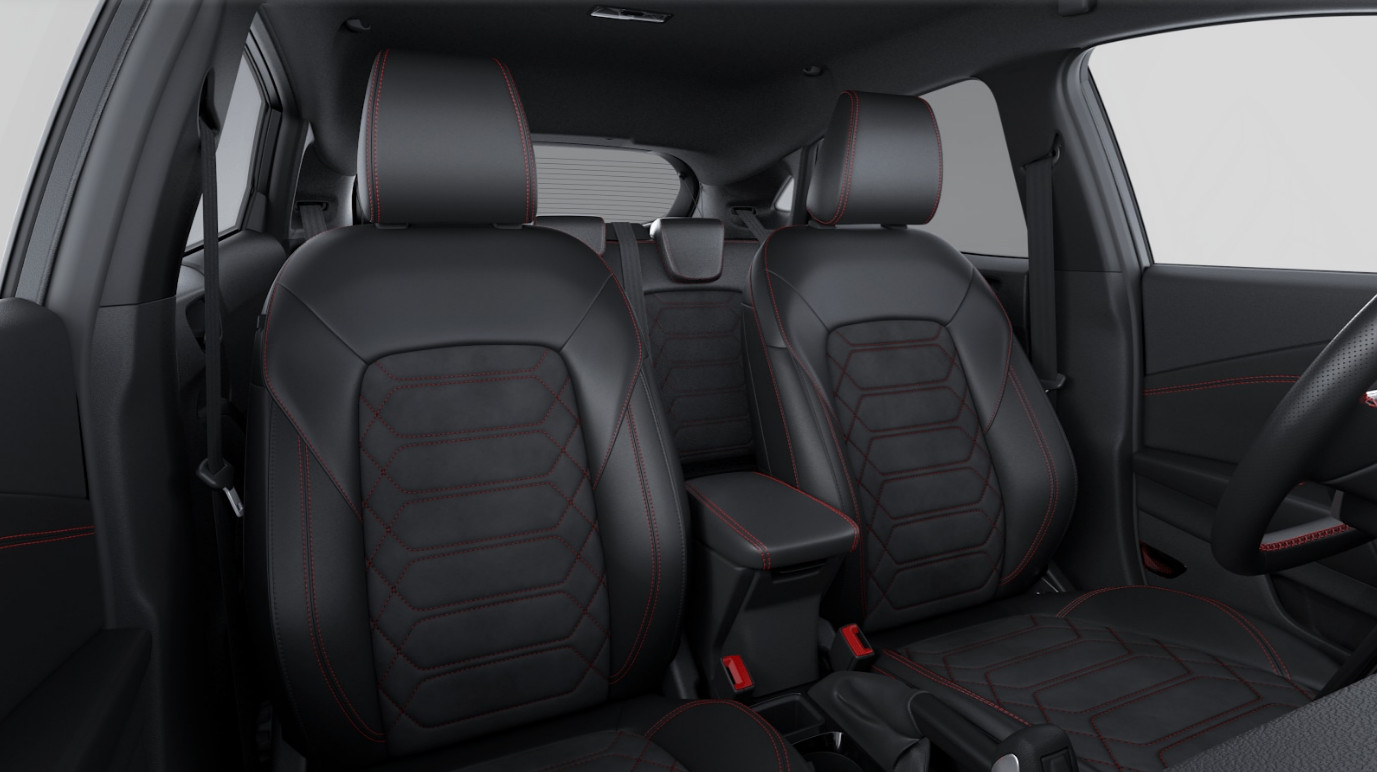 Sportstoelen voor met gedeeltelijk Sensico bekleding en rode stiksels