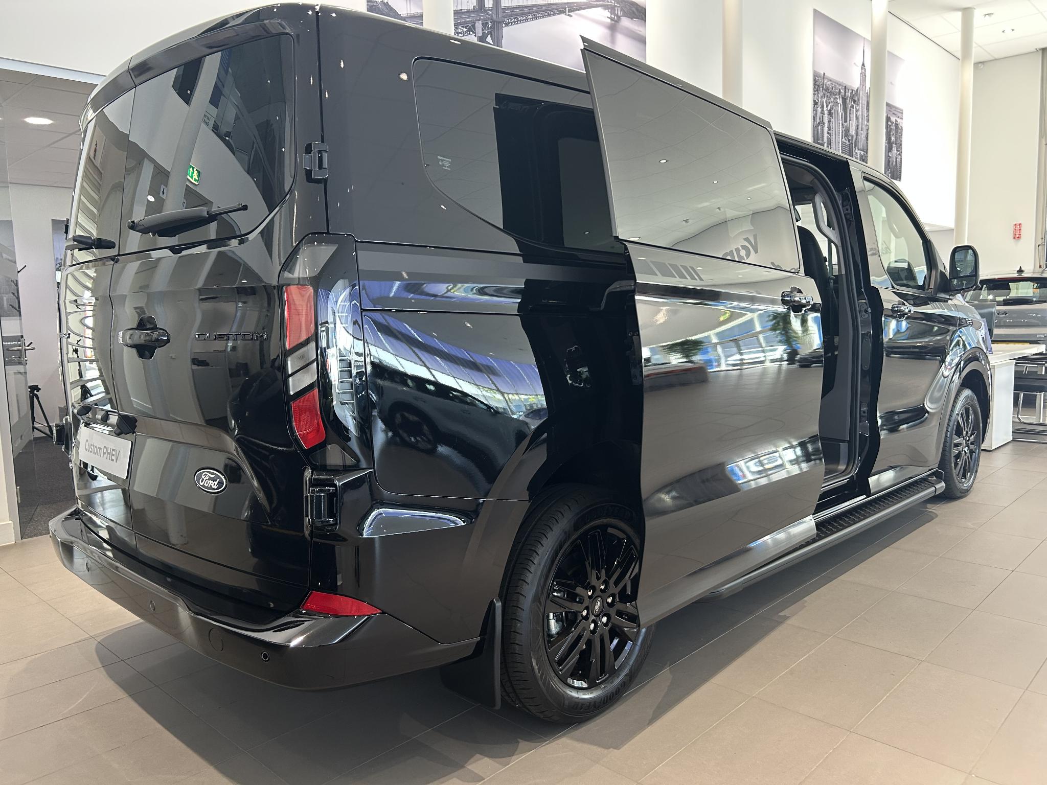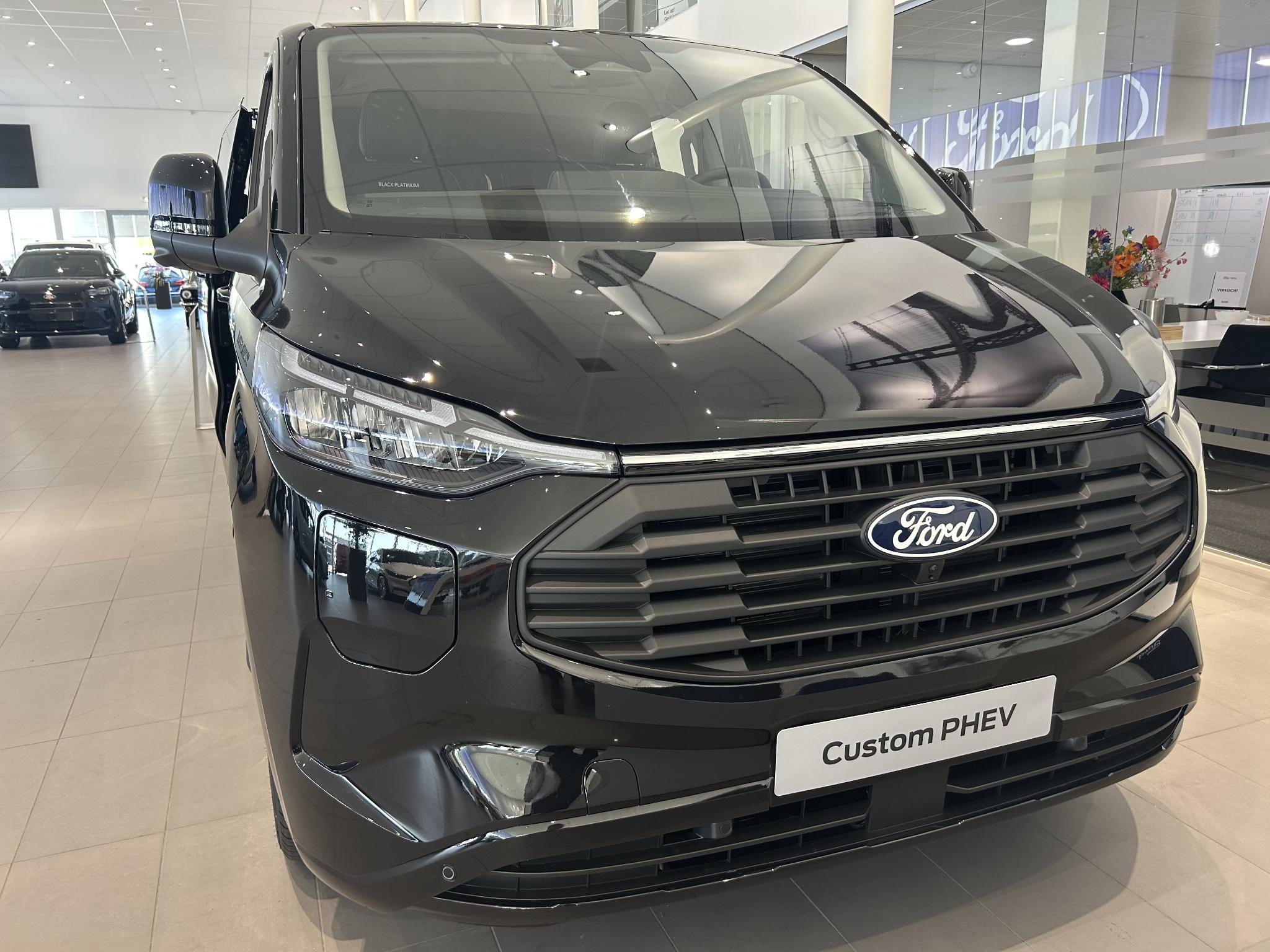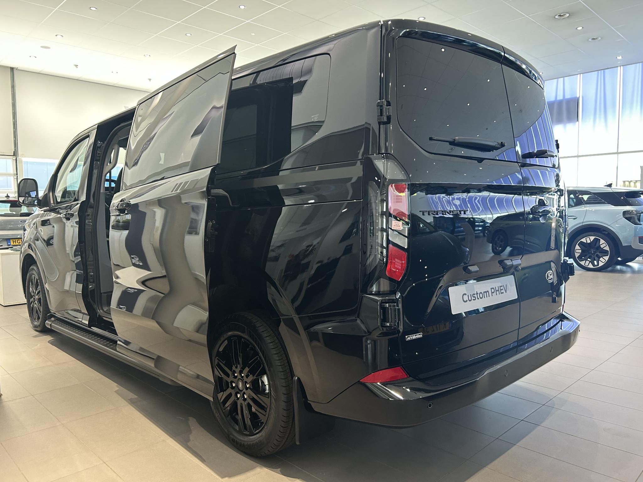 Transit Custom Limited Black Platinum | NETTO BIJTELLING 2025 VANAF € 382,- | DUBBEL CABINE | 360 GRADEN CAMERA | VOLLEDIG LEER | ADAPTIEVE CRUISE CONTROL | DUBBELE ZIJSCHUIFDEUR | VERWARMBAAR STUURWIEL
