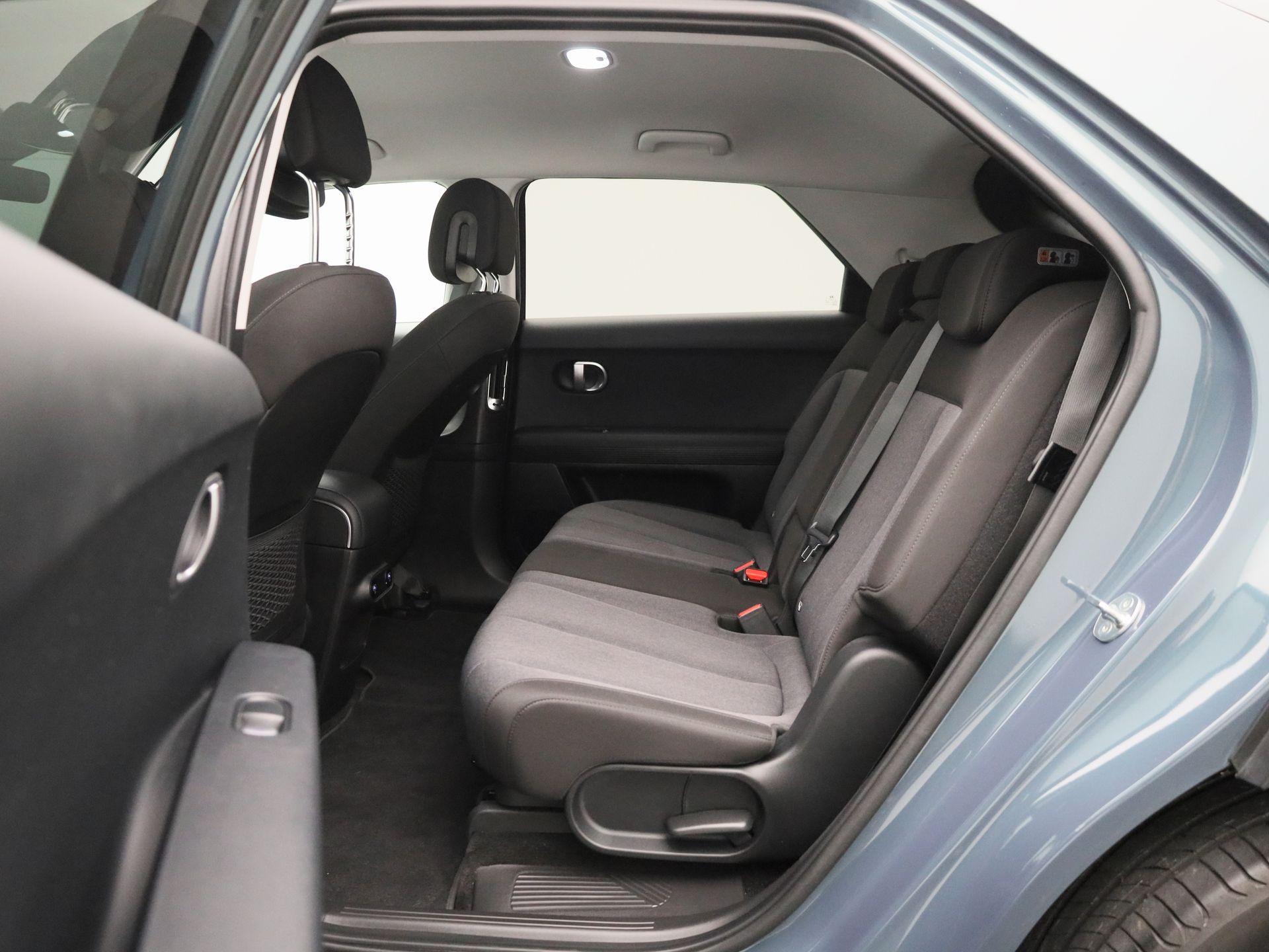 3 asymmetrische neerklapbare zitplaatsen achterin in de vorm van een gedeelde bank naar voren kijken