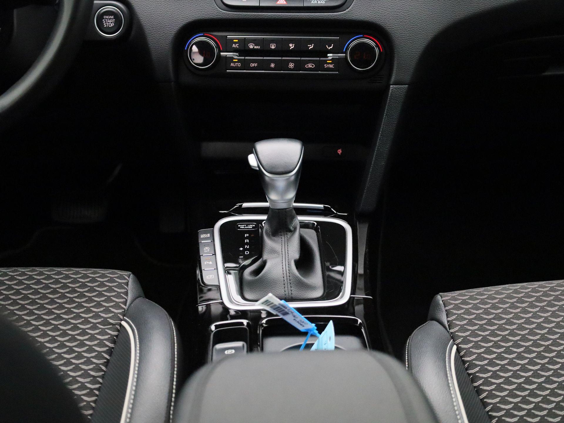 Luxe lederen afwerking op de pookknop, piano-zwart, chroom en piano-zwart