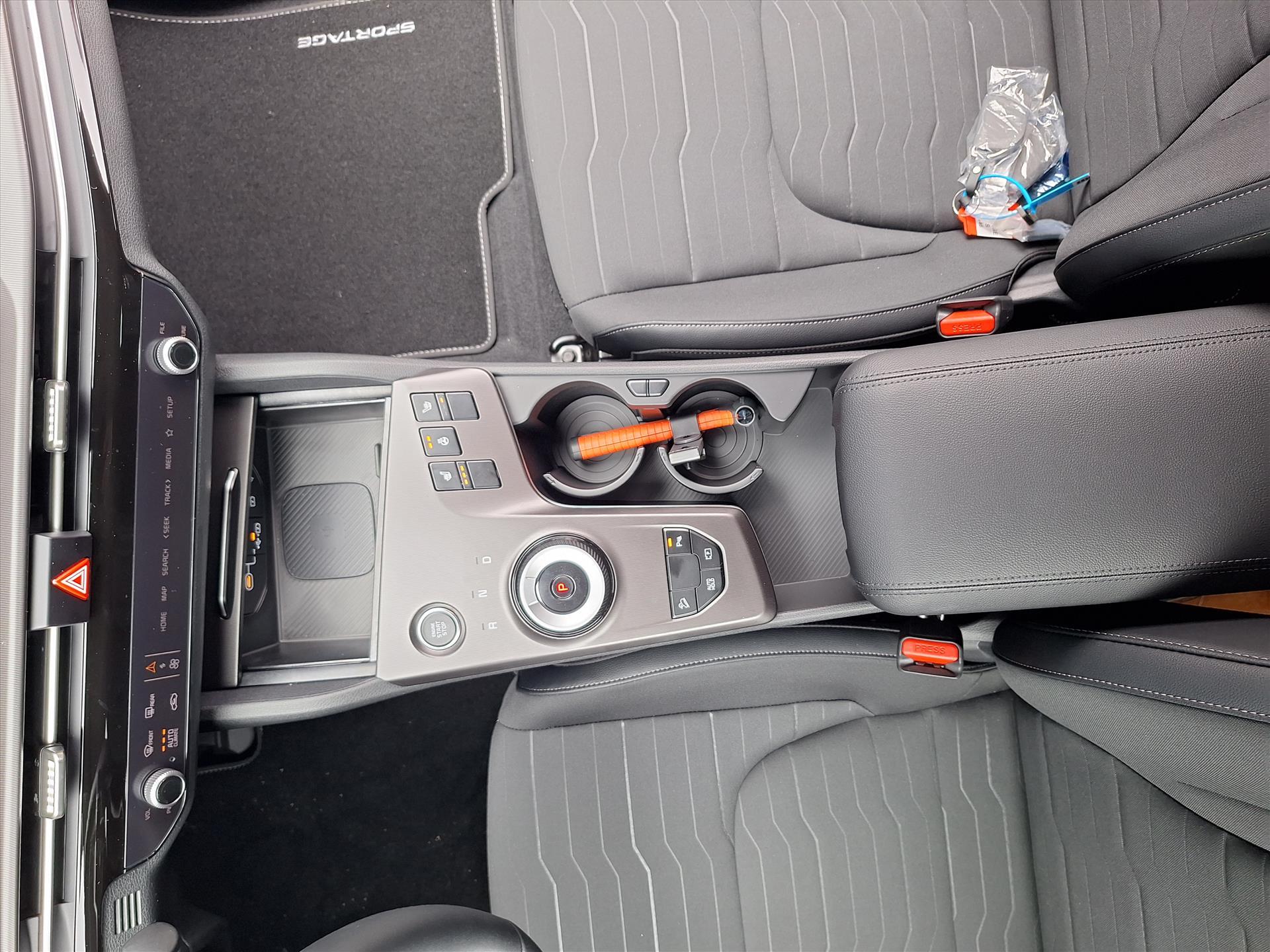 Middenarmsteun, voorzijde met opbergvak
