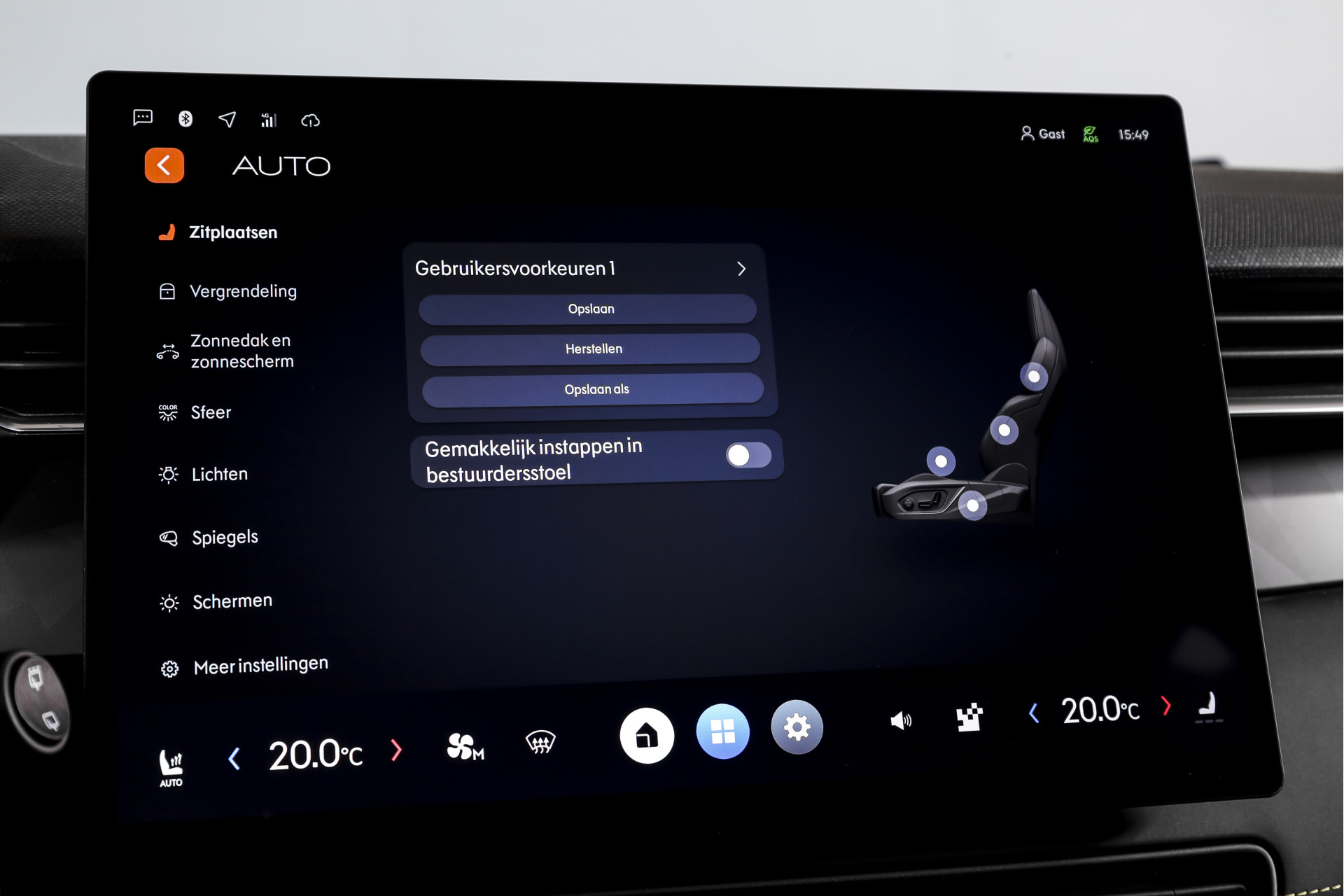 interieurklimaat vooraf instelbaar