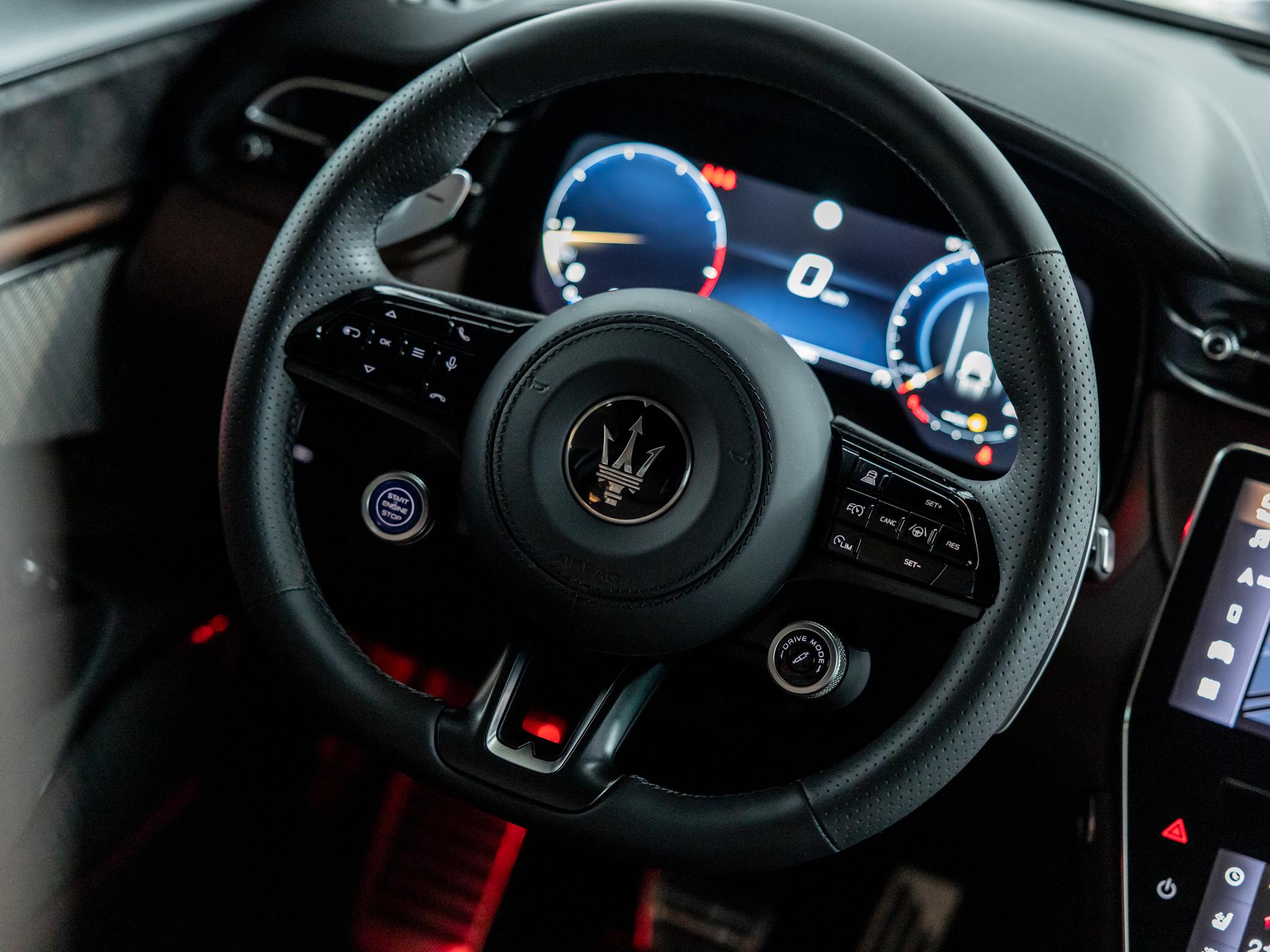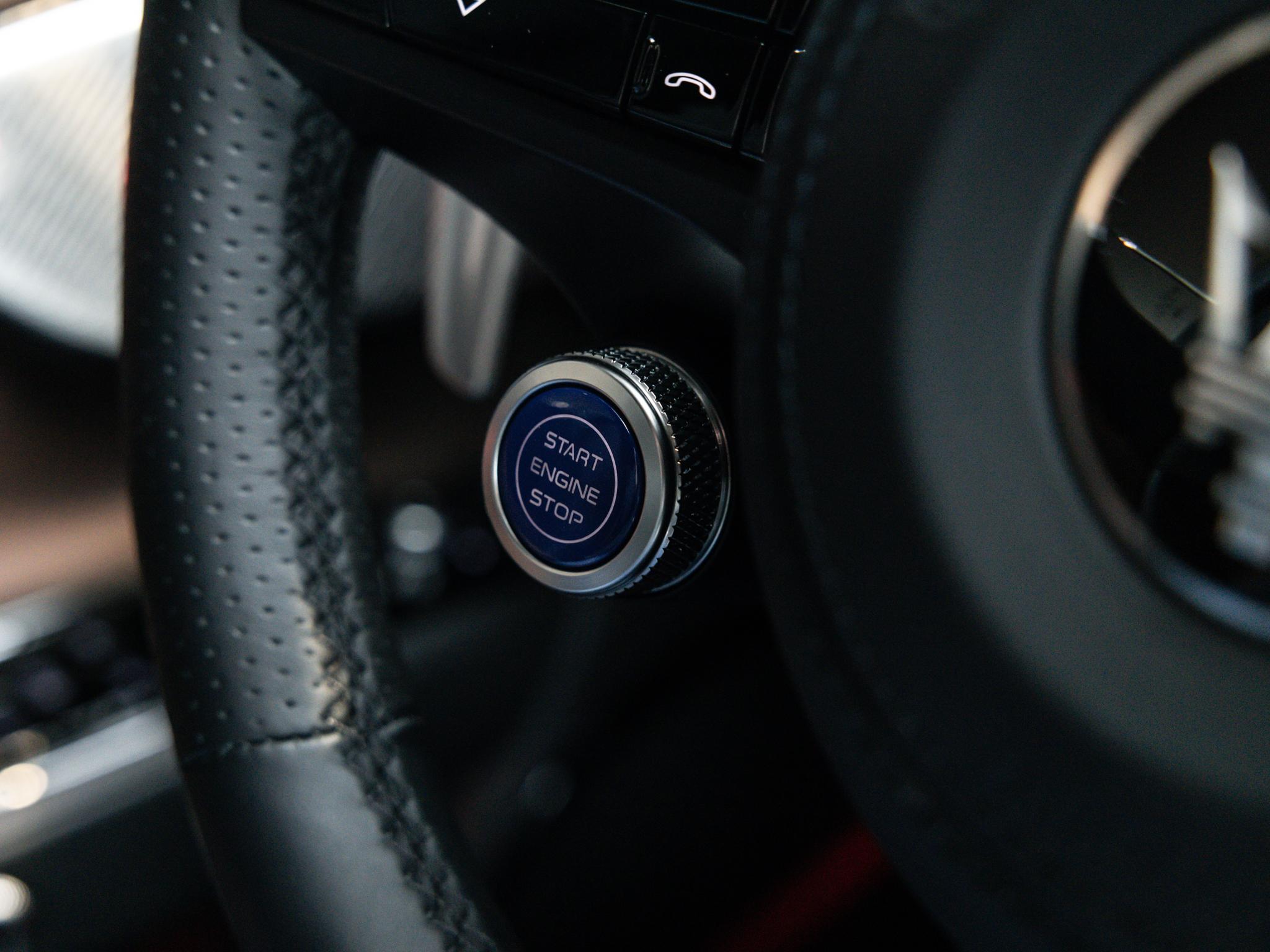 Drilled Steering Wheel "Forged Black" with Fixed Paddle Shifters and Blue Start Button (QSCL )