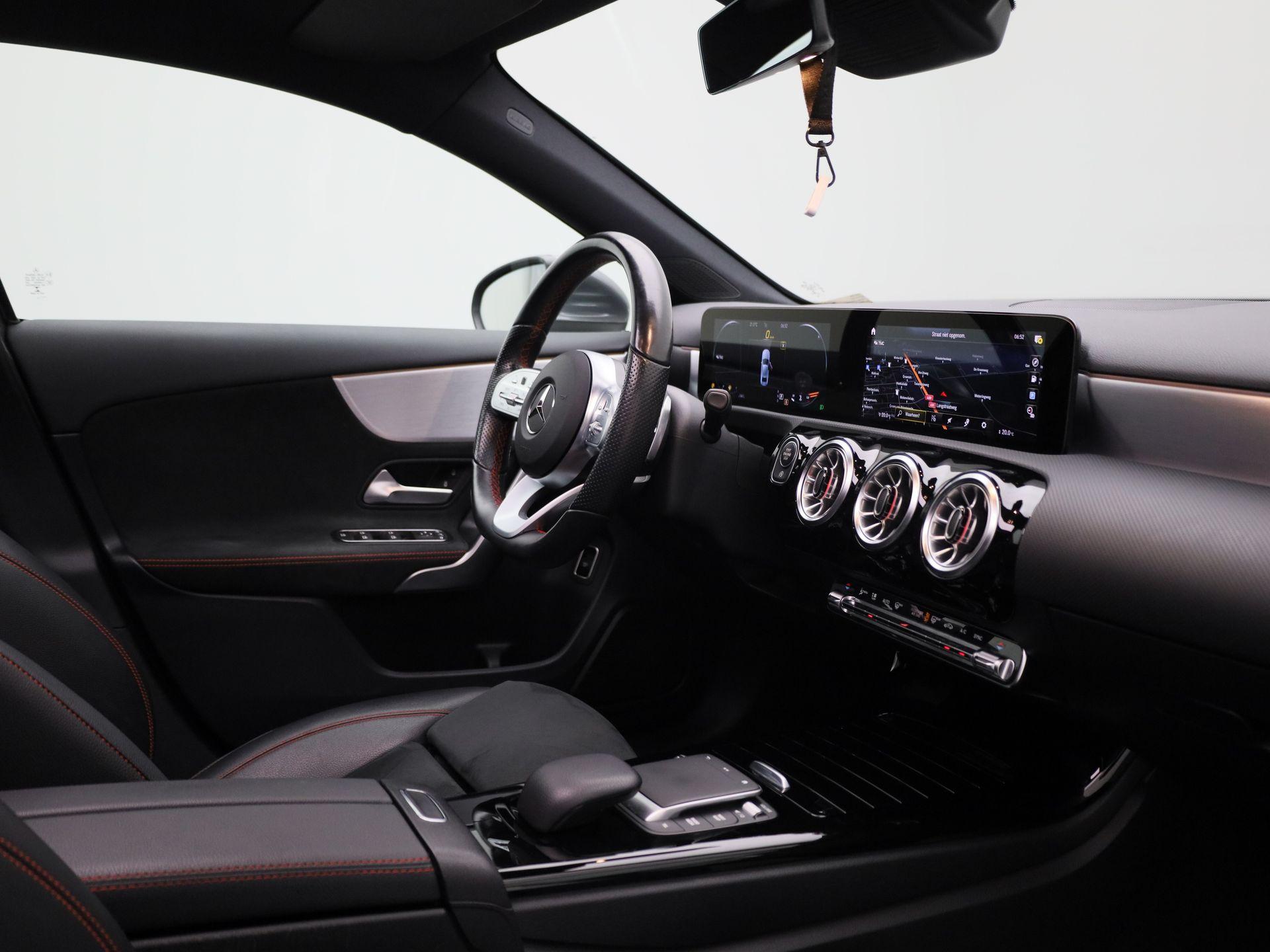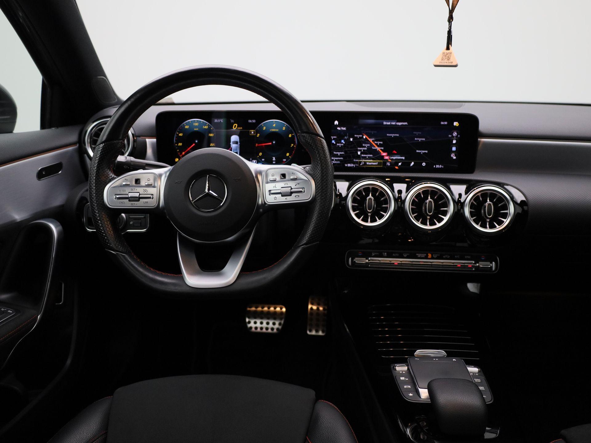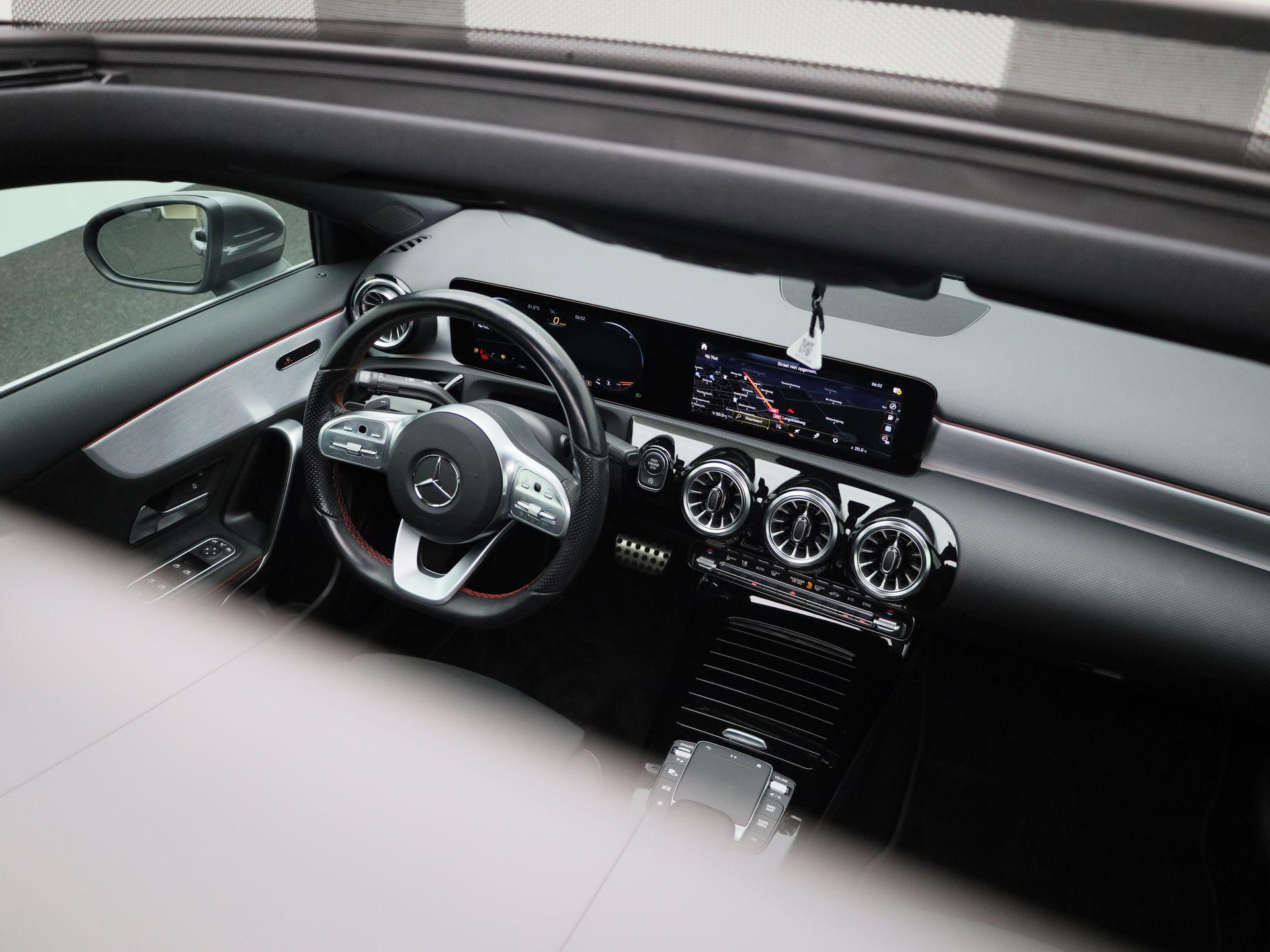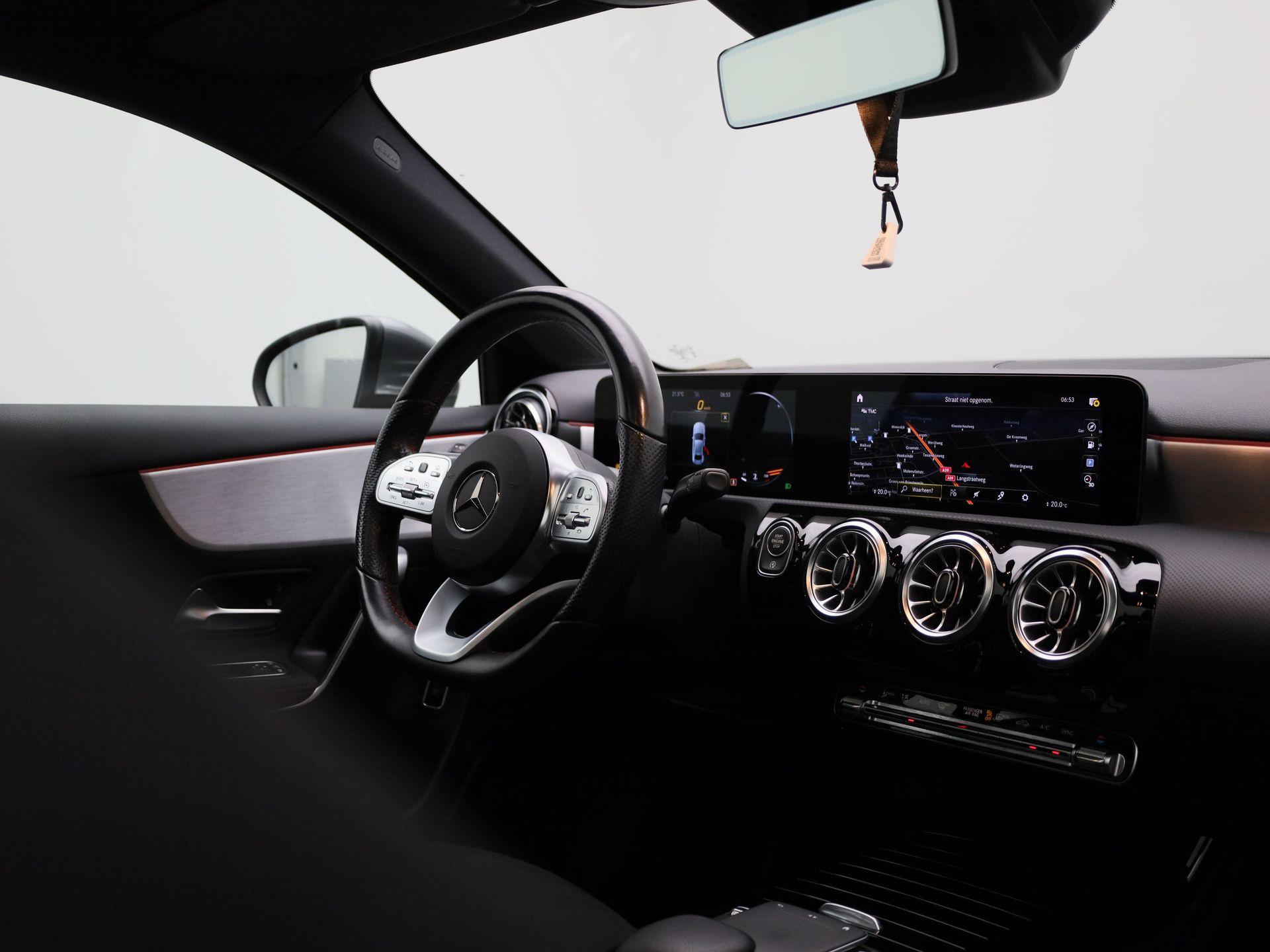 180 Business Solution AMG | Automaat | Panoramadak | Navigatie | Sfeerverlichting | Achteruitrijcamera | Stoelverwarming | Wide Screen Virtual Cockpit | Cruise Control | Climate Control | Parkeersensoren | Bluetooth | LED | Sportstuur | Half-Leder | Lichtmetalen Velgen|