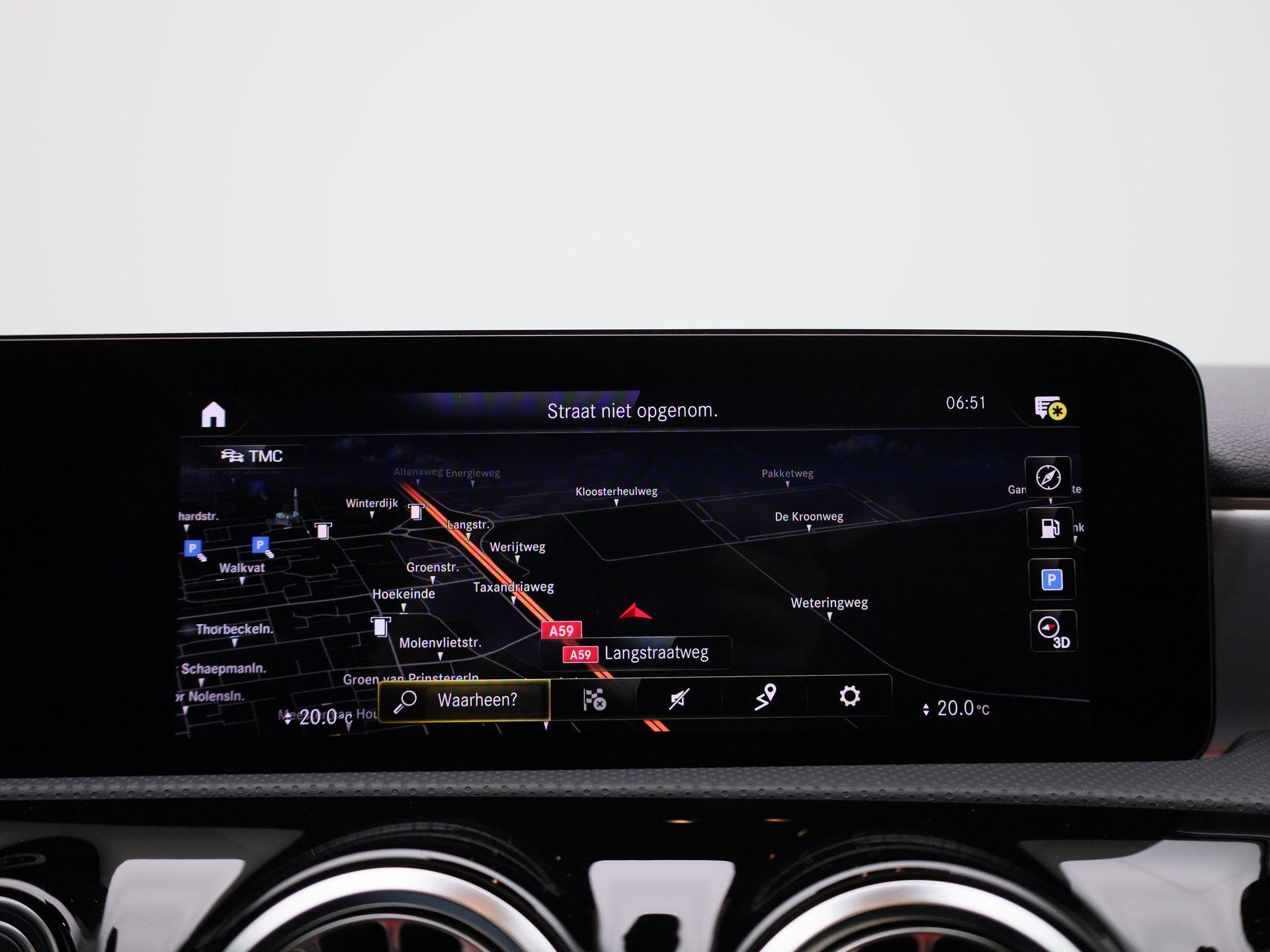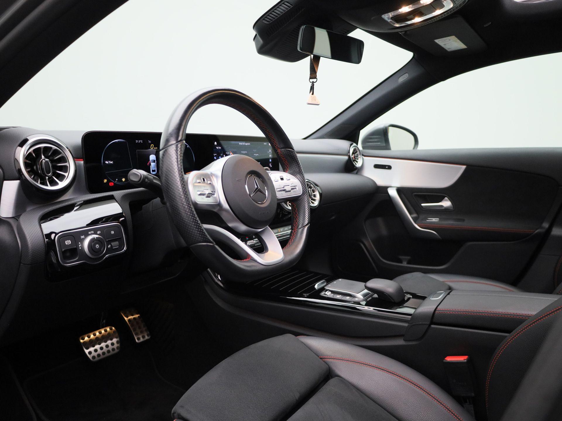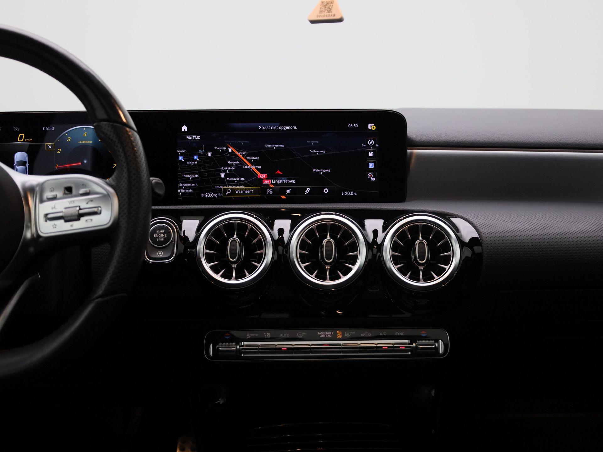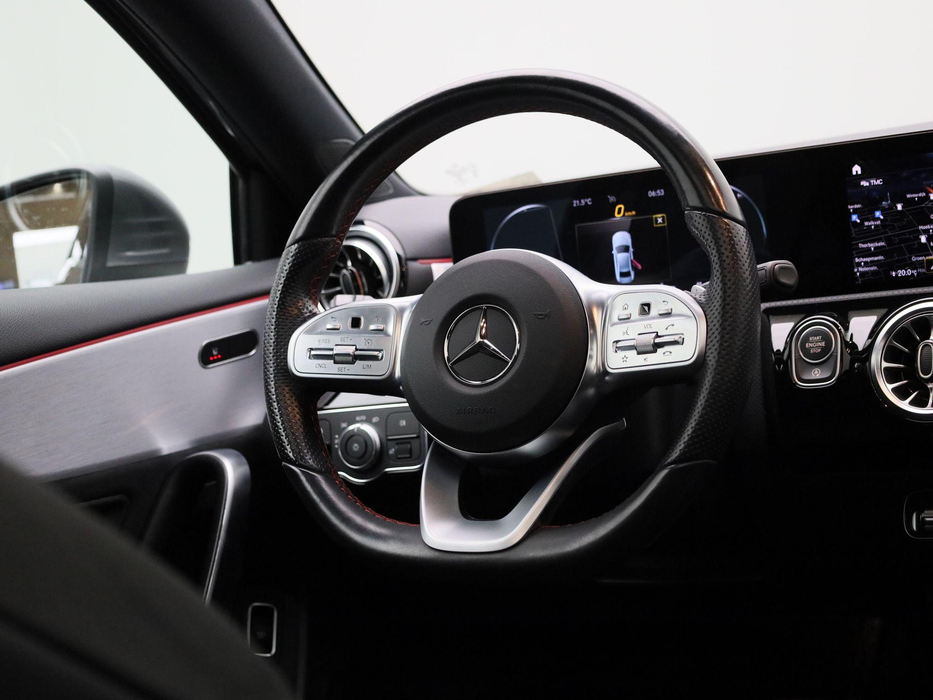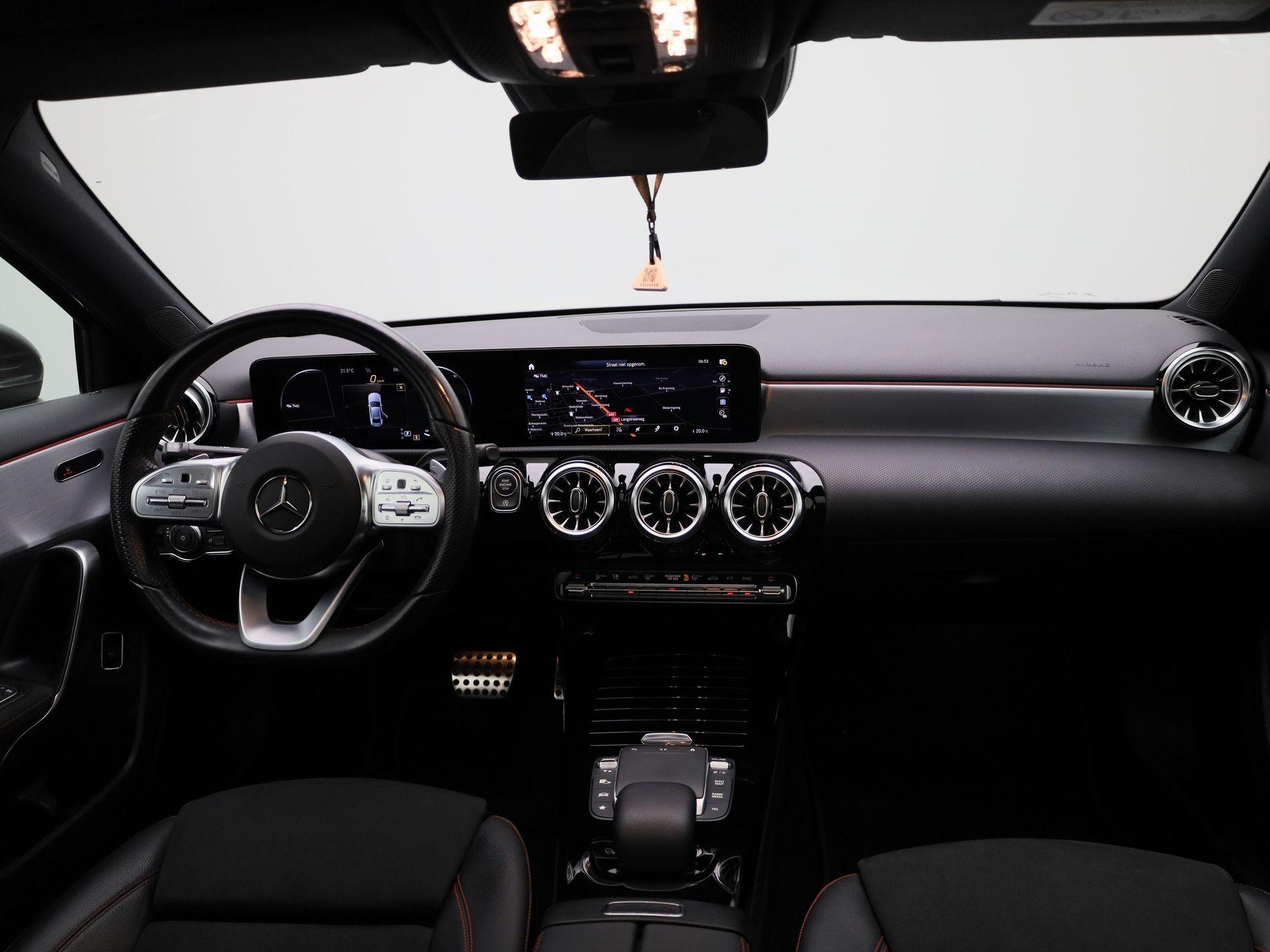 180 Business Solution AMG | Automaat | Panoramadak | Navigatie | Sfeerverlichting | Achteruitrijcamera | Stoelverwarming | Wide Screen Virtual Cockpit | Cruise Control | Climate Control | Parkeersensoren | Bluetooth | LED | Sportstuur | Half-Leder | Lichtmetalen Velgen|