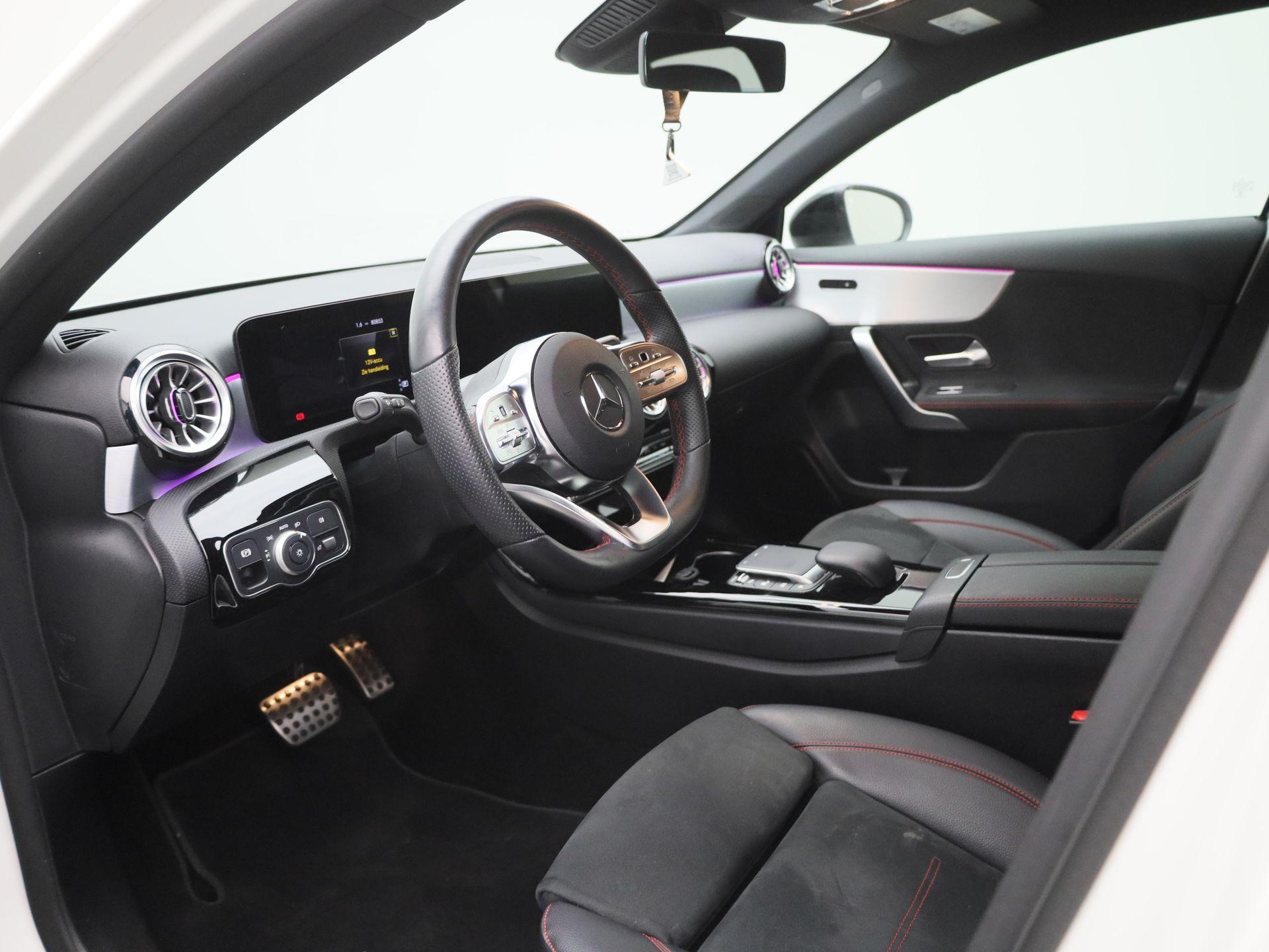 180 Business Solution AMG | Automaat | Navigatie | Sfeerverlichting | Achteruitrijcamera | Stoelverwarming | Wide Screen Virtual Cockpit | Cruise Control | Climate Control | Parkeersensoren | Bluetooth | LED | Sportstuur | Half-Leder | Lichtmetalen Velgen|