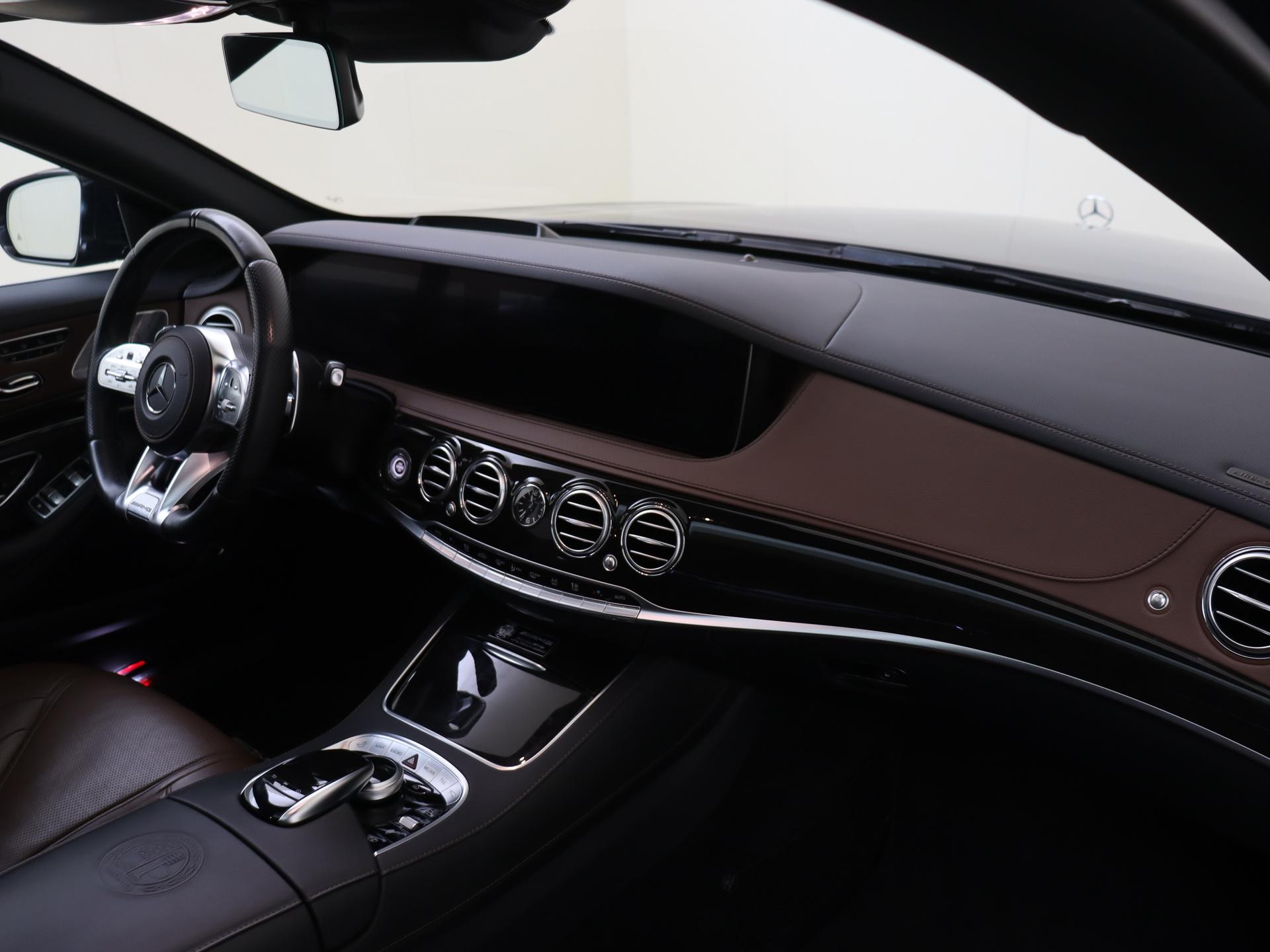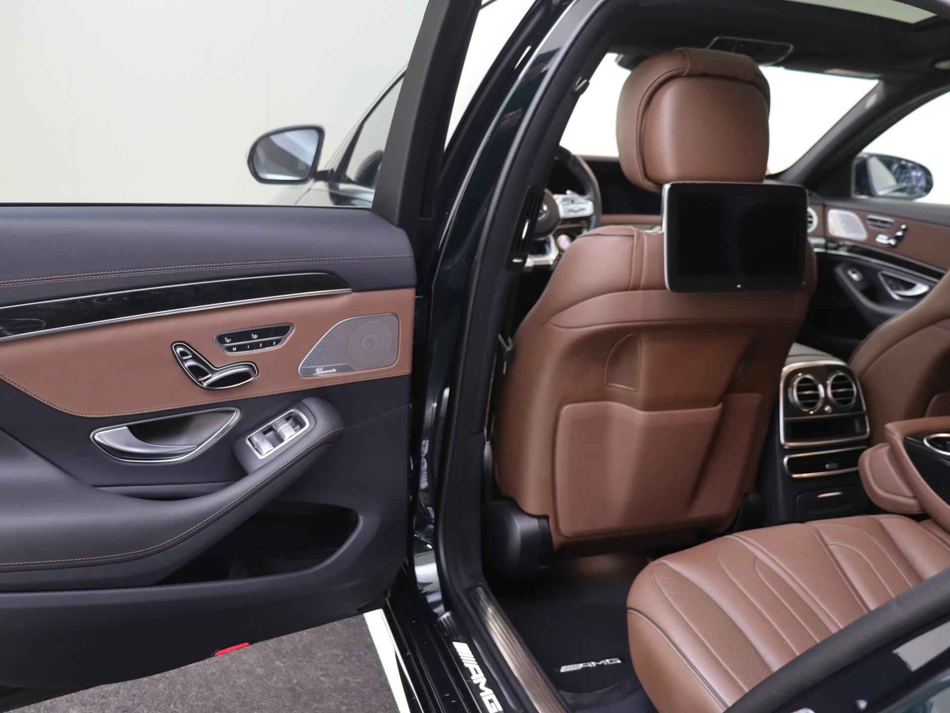 AMG 63 4Matic+ Lang Premium Plus / Panoramadak/ Burmester/ Entertainment achter/ DISTRONIC/ Smaragdgroen/ Bruin interieur