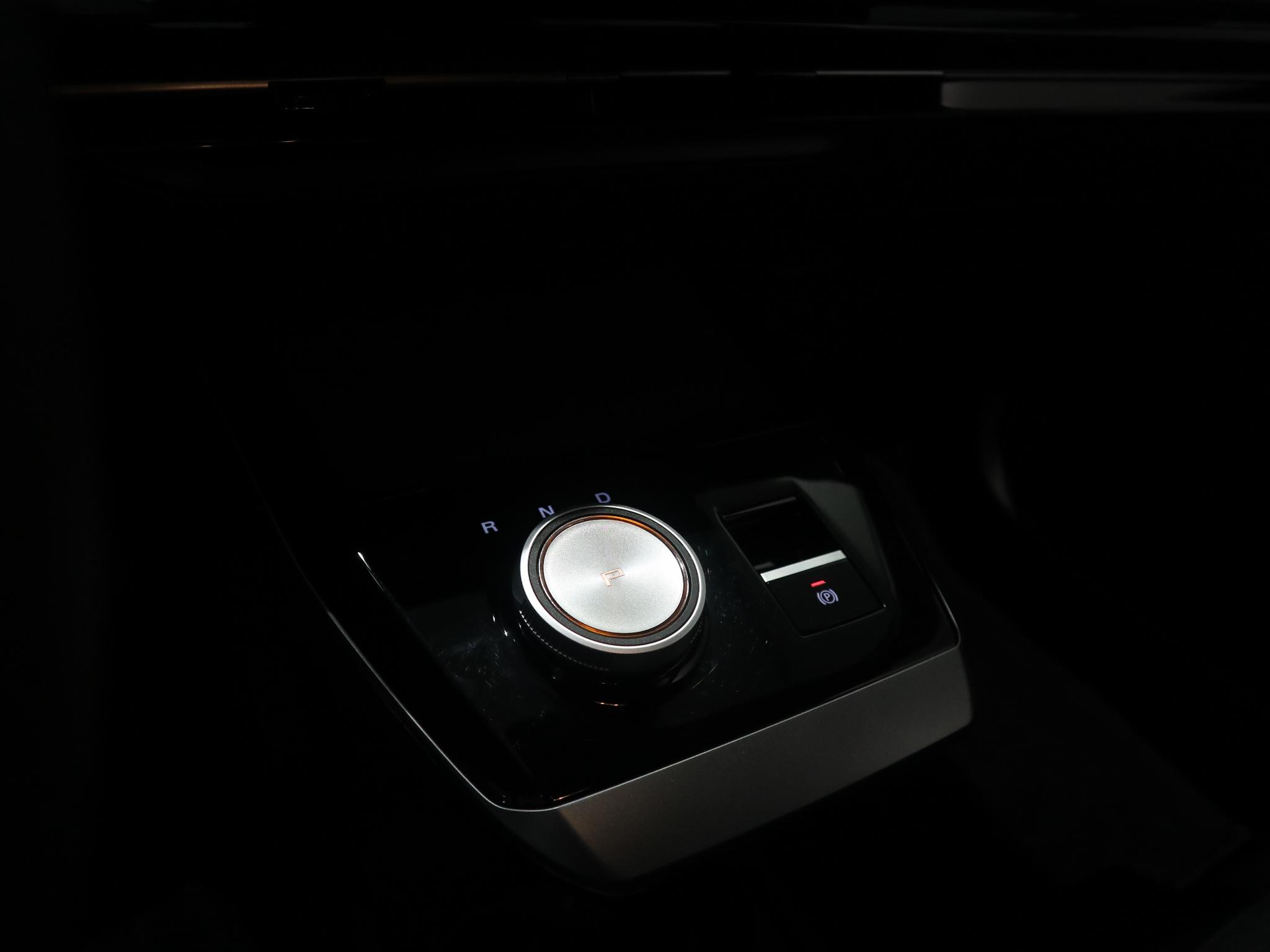 Luxe licht metaal look afwerking op de pookknop, licht metaal afwerking op de centrale vloerconsole,