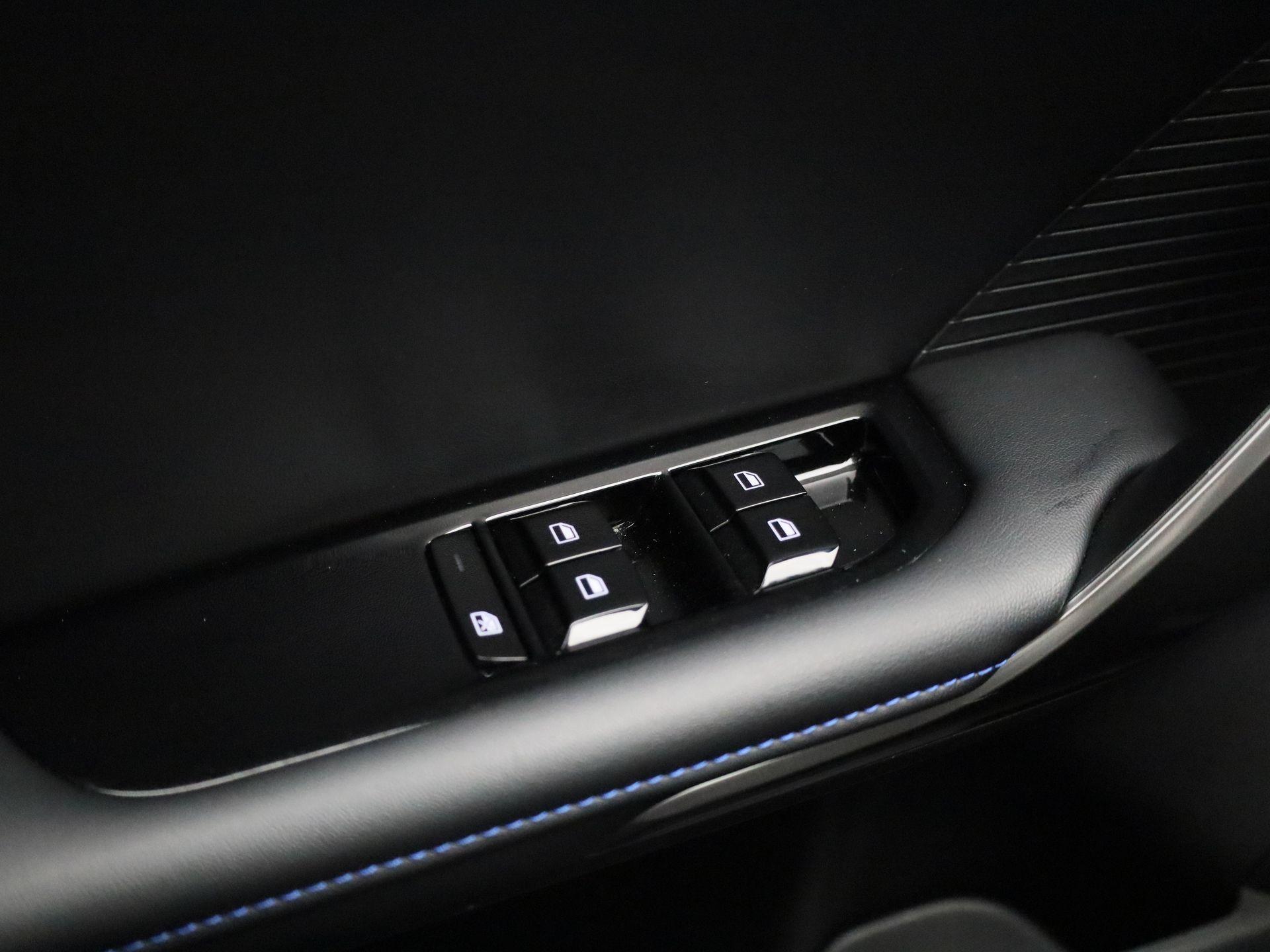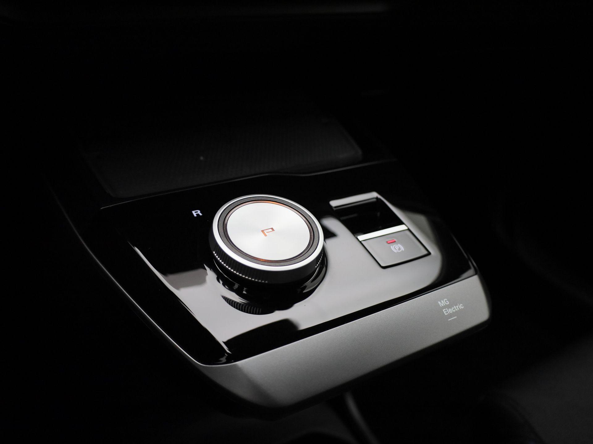 Luxe licht metaal look afwerking op de pookknop, licht metaal afwerking op de centrale vloerconsole,
