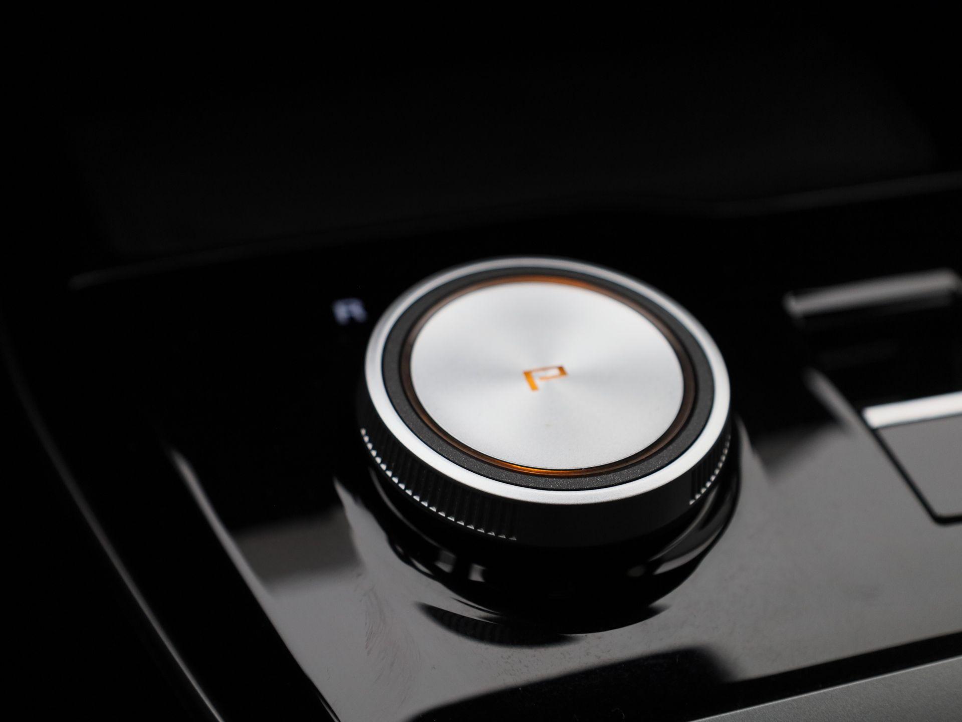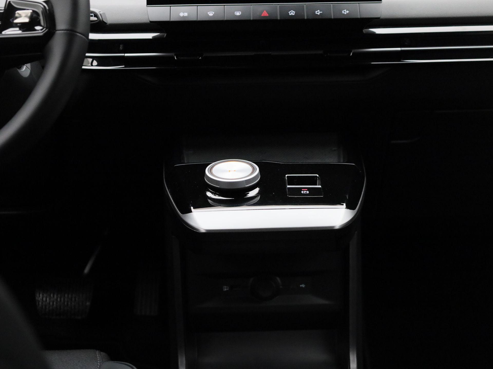 Luxe licht metaal look afwerking op de pookknop, licht metaal afwerking op de centrale vloerconsole,