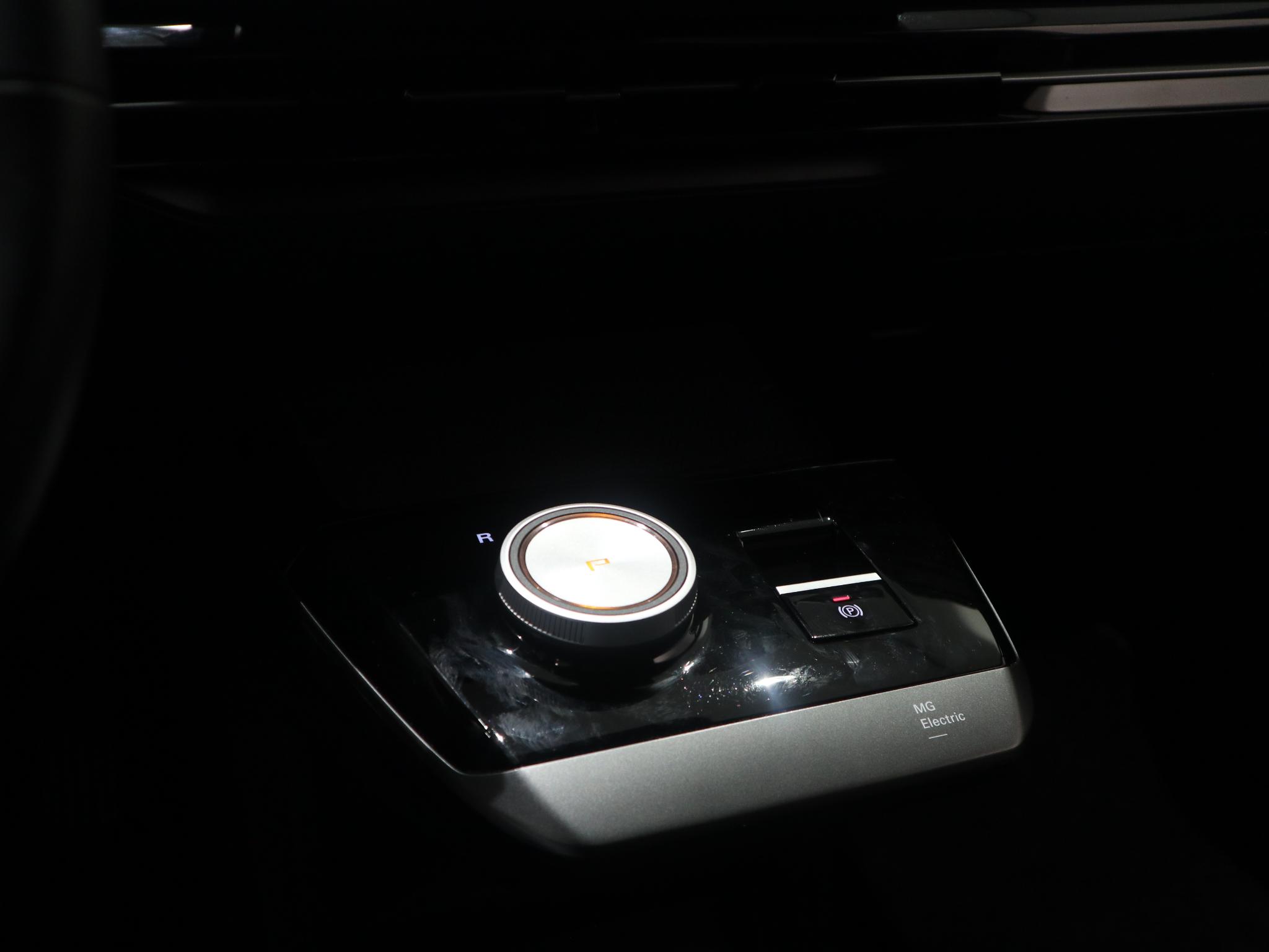 Luxe licht metaal look afwerking op de pookknop, licht metaal afwerking op de centrale vloerconsole,