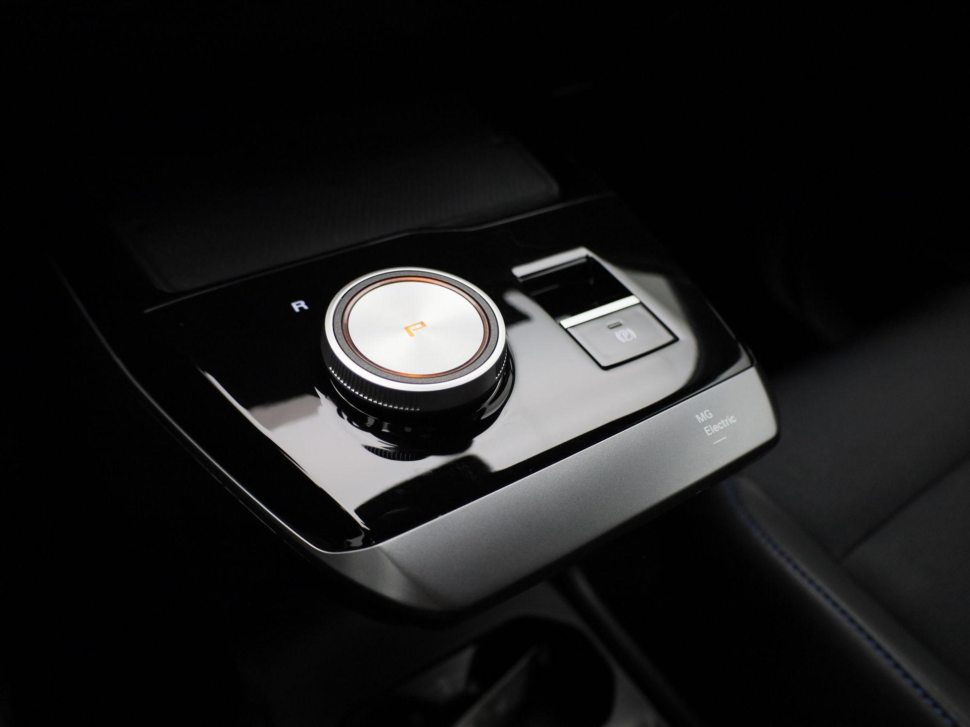 Luxe licht metaal look afwerking op de pookknop, licht metaal afwerking op de centrale vloerconsole,