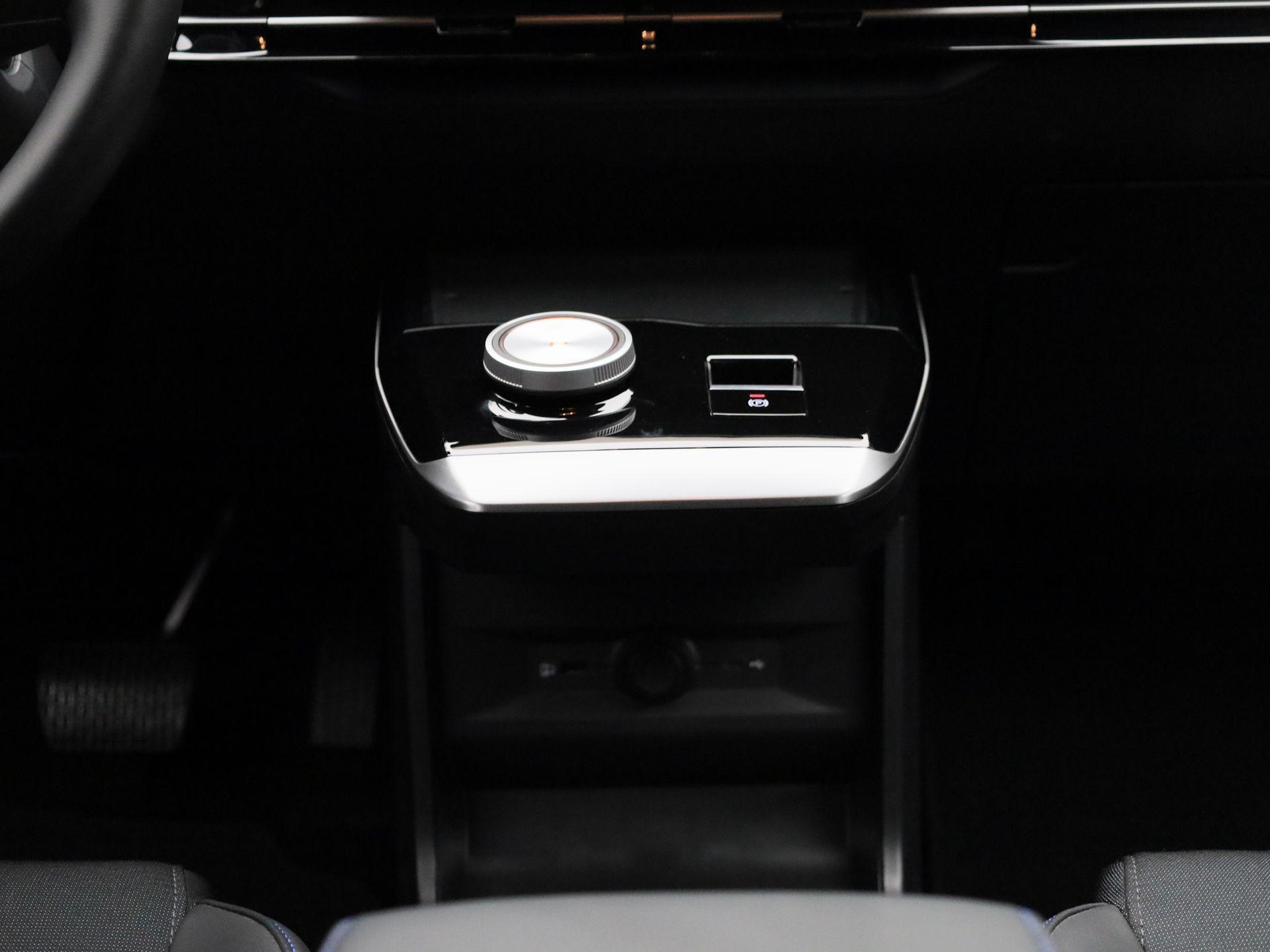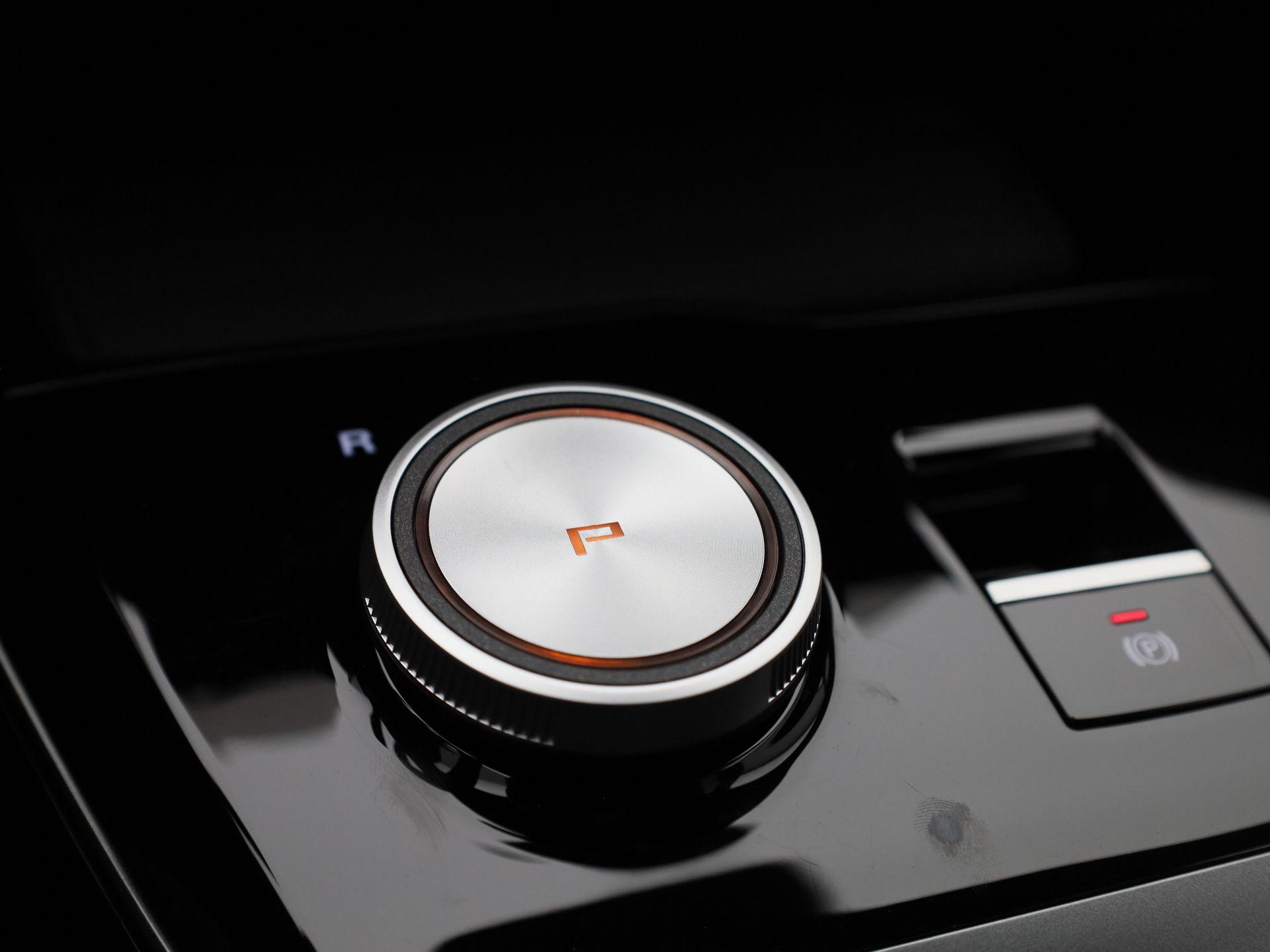 Luxe licht metaal look afwerking op de pookknop, licht metaal afwerking op de centrale vloerconsole,