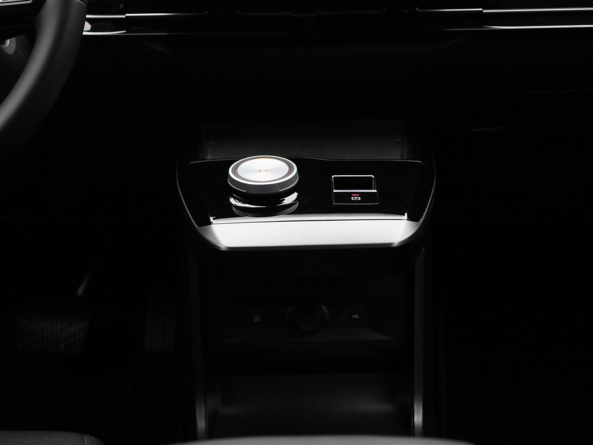 Luxe licht metaal look afwerking op de pookknop, licht metaal afwerking op de centrale vloerconsole,