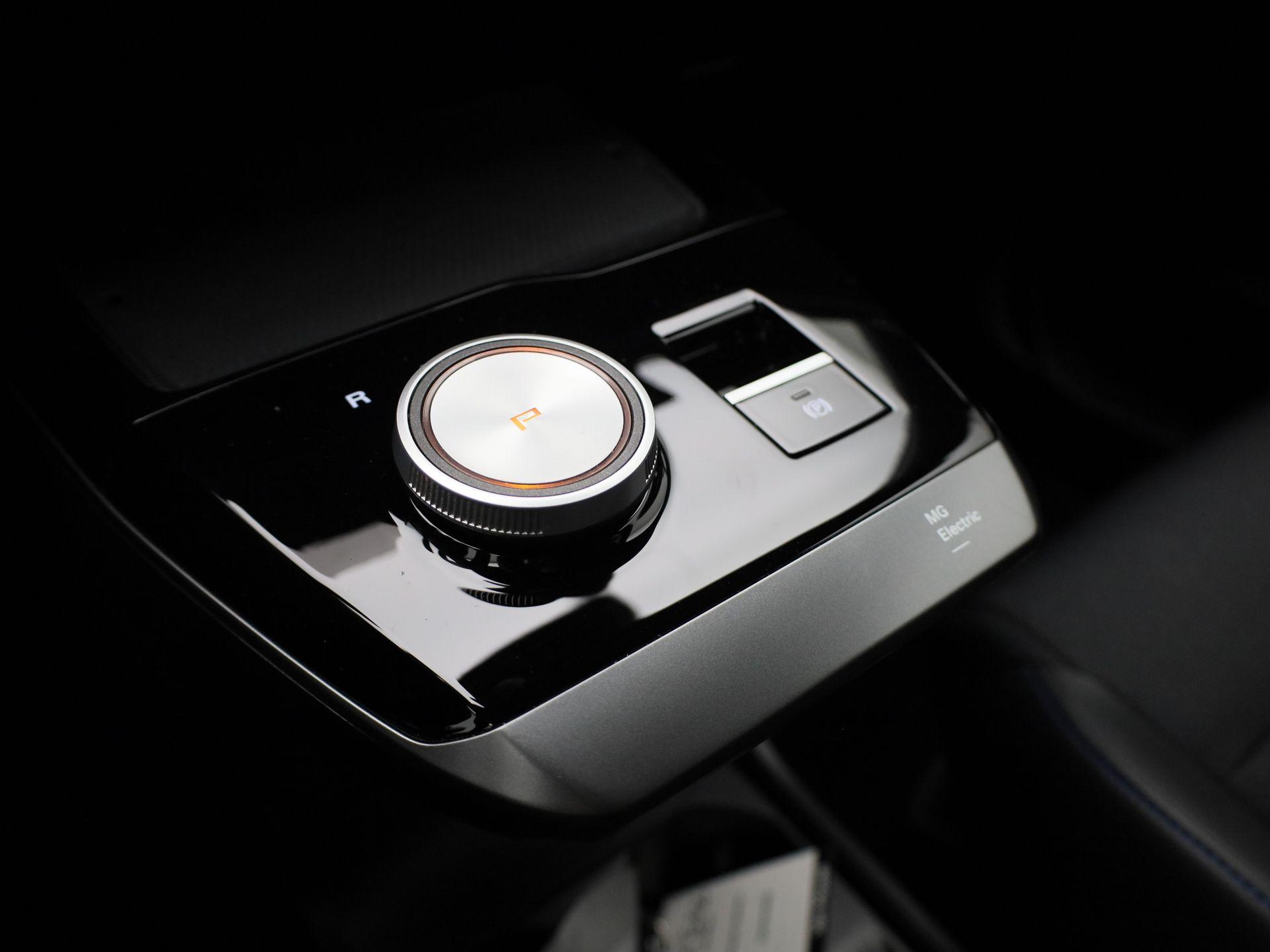Luxe licht metaal look afwerking op de pookknop, licht metaal afwerking op de centrale vloerconsole,