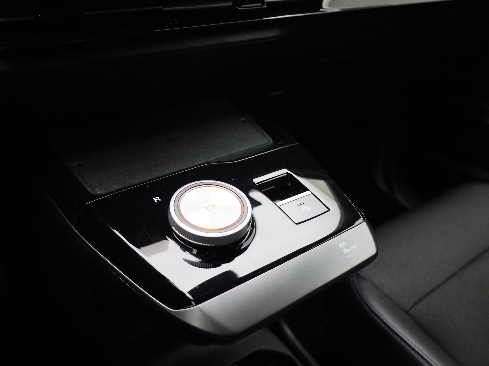 Luxe licht metaal look afwerking op de pookknop, licht metaal afwerking op de centrale vloerconsole,