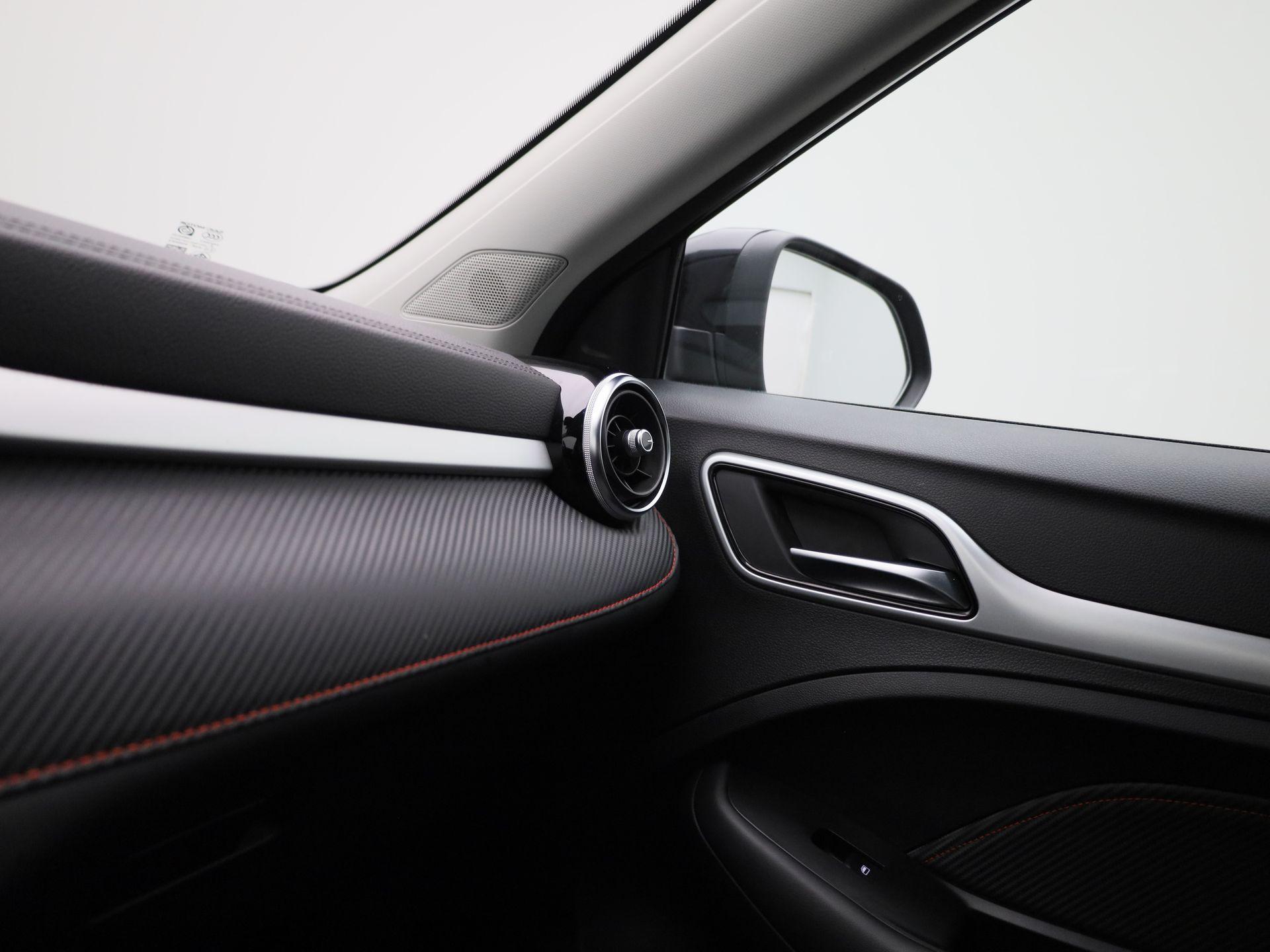 Chroom/glimmend accent rond de zijramen op de flanken