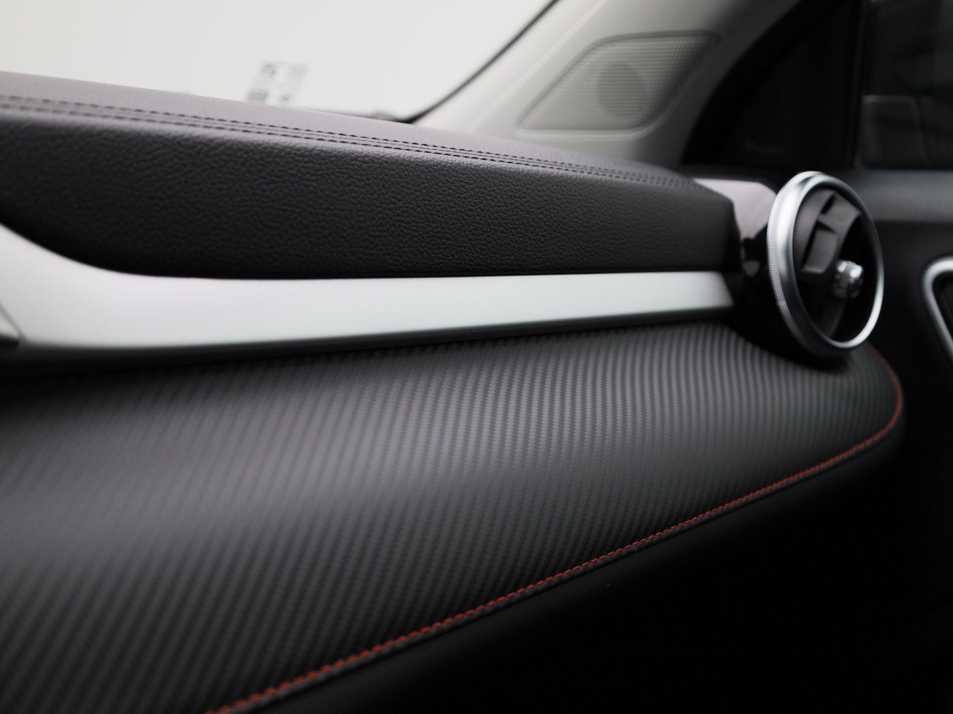 Luxe metaal & leder, piano-zwart, alu-look en licht metaal afwerking op het dashboard