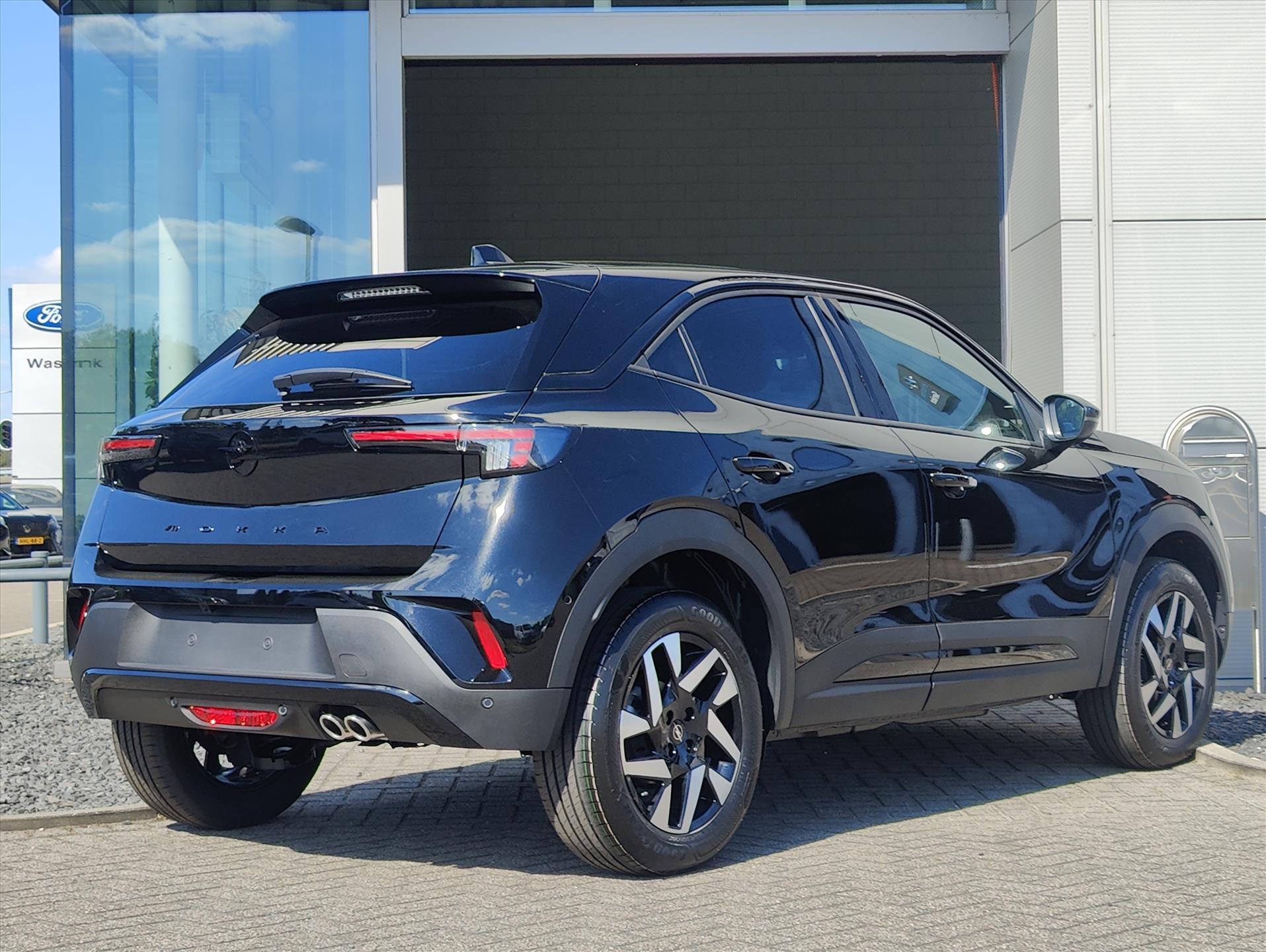 Opel logo en modelaanduiding in zwarte letters op achterzijde