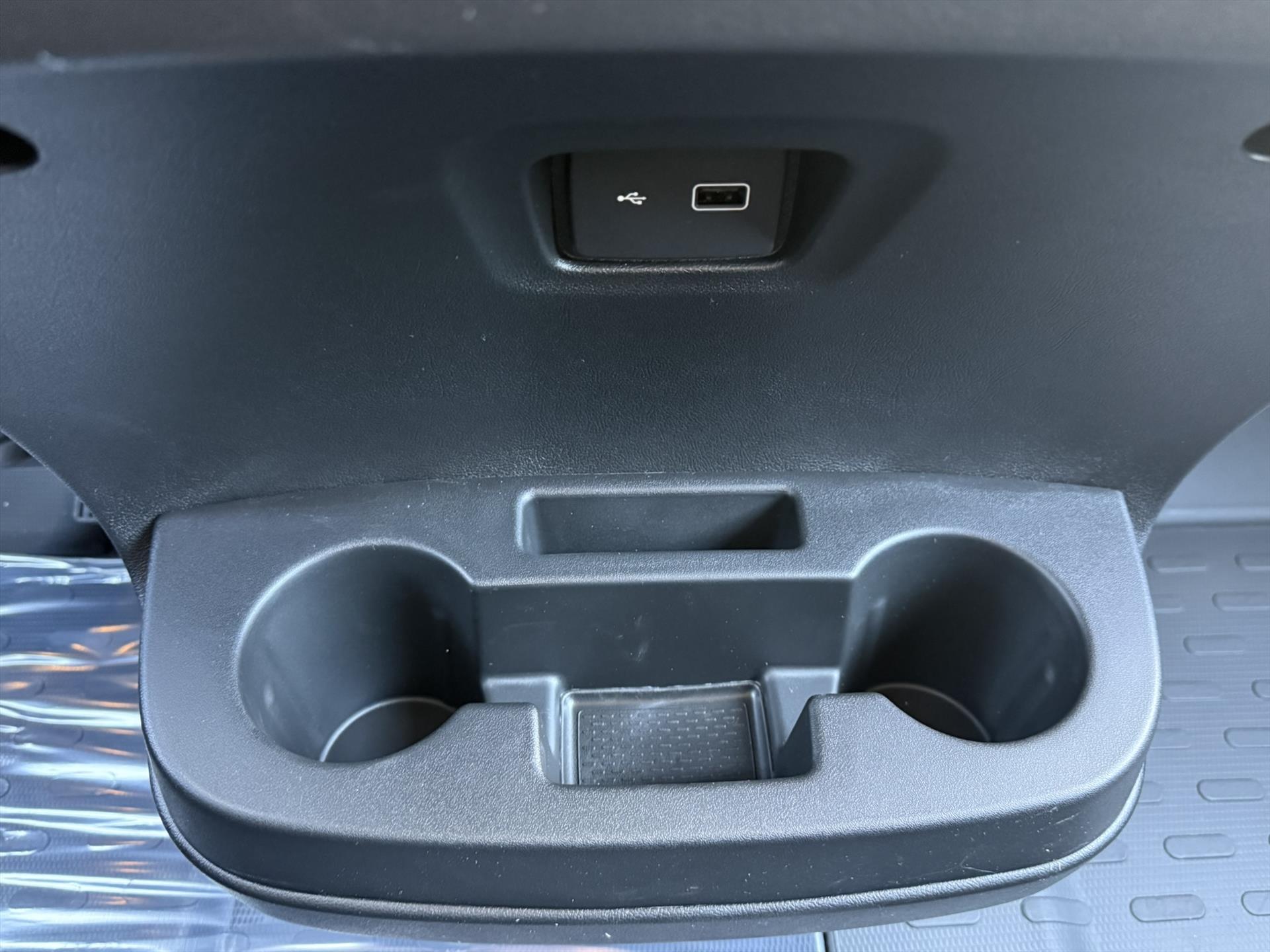 Centraal geplaatst open opbergvak inclusief bekerhouders