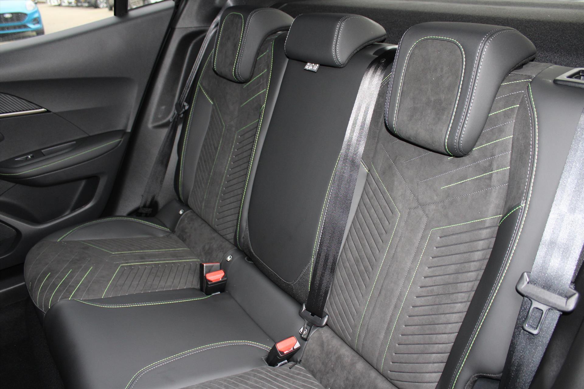 Sportstuurwiel afgewerkt met geperforeerd leder, groen stiksel en GT-logo