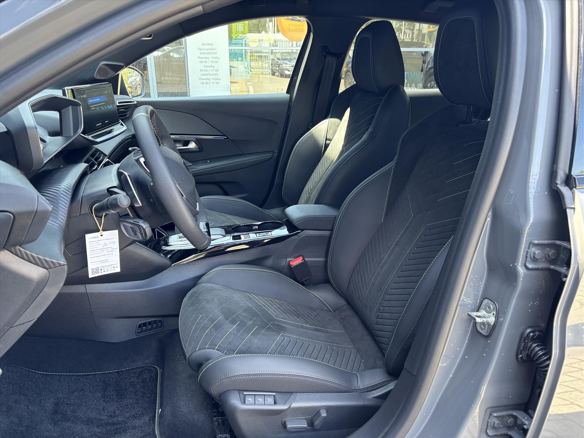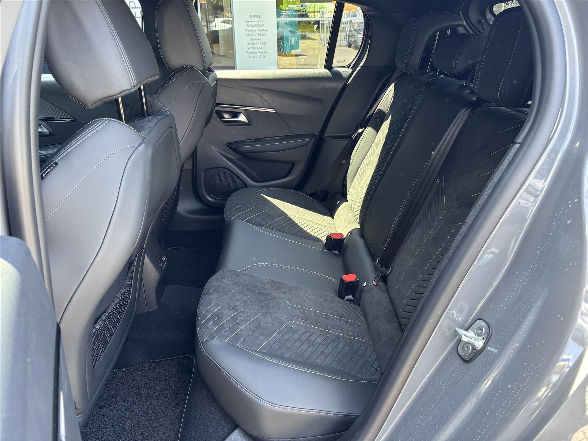 Armsteunen op de voorportieren bekleed met kunstleder met groen sierstiksel