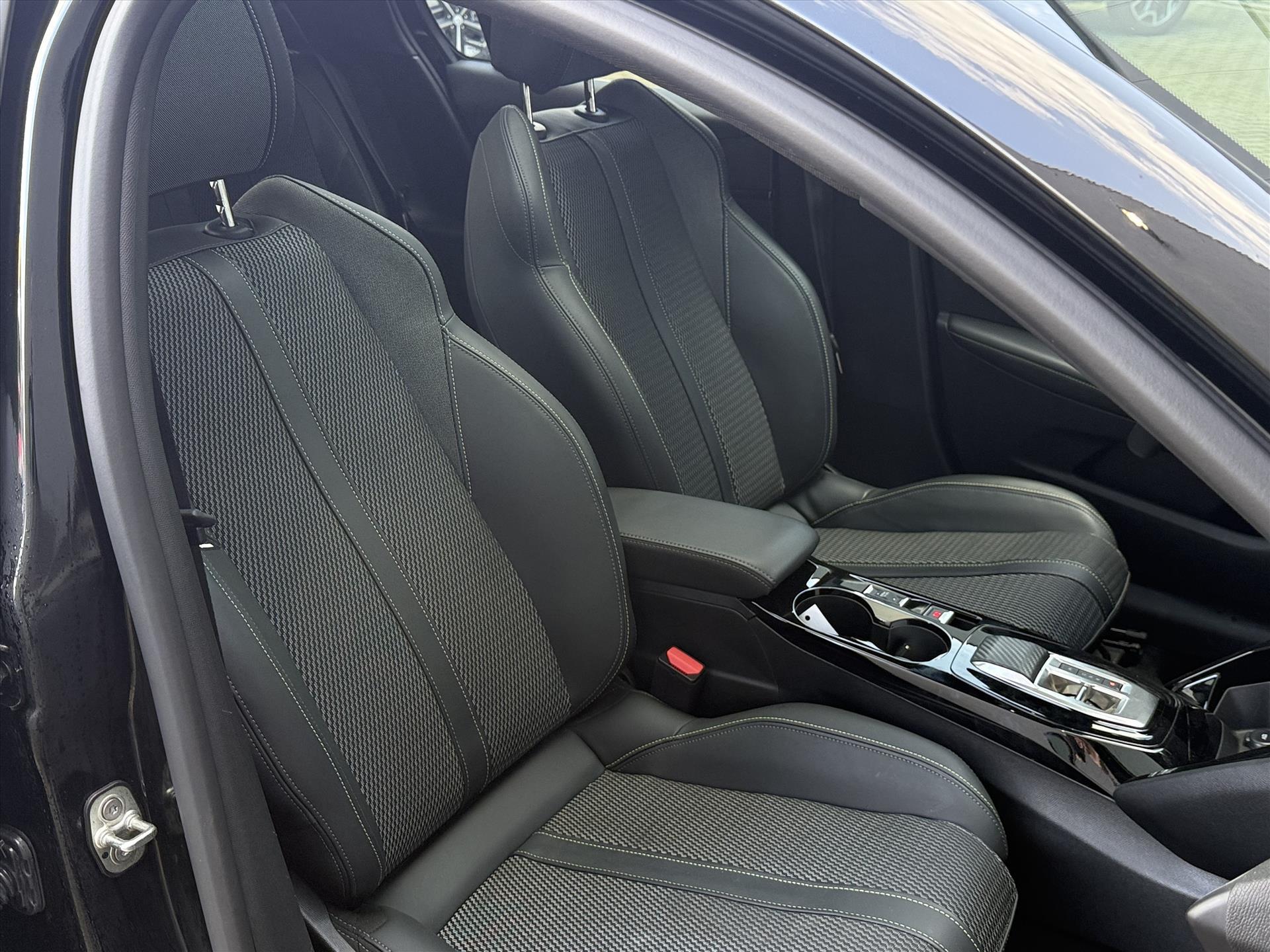 Armsteunen op de voorportieren bekleed met kunstleder met groen sierstiksel