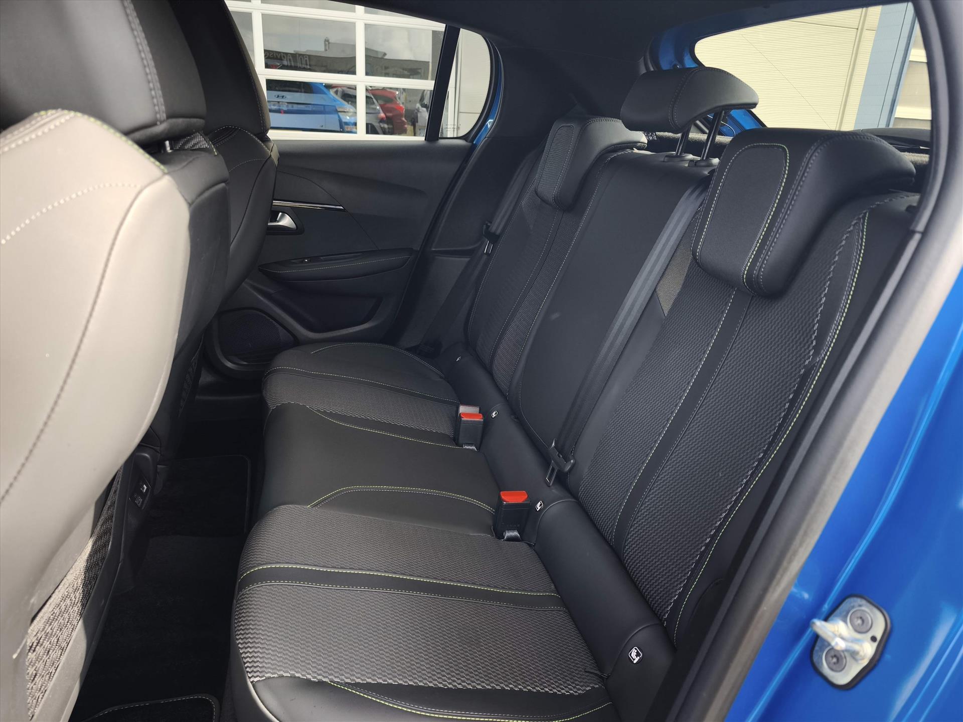 Armsteunen op de voorportieren bekleed met kunstleder met groen sierstiksel