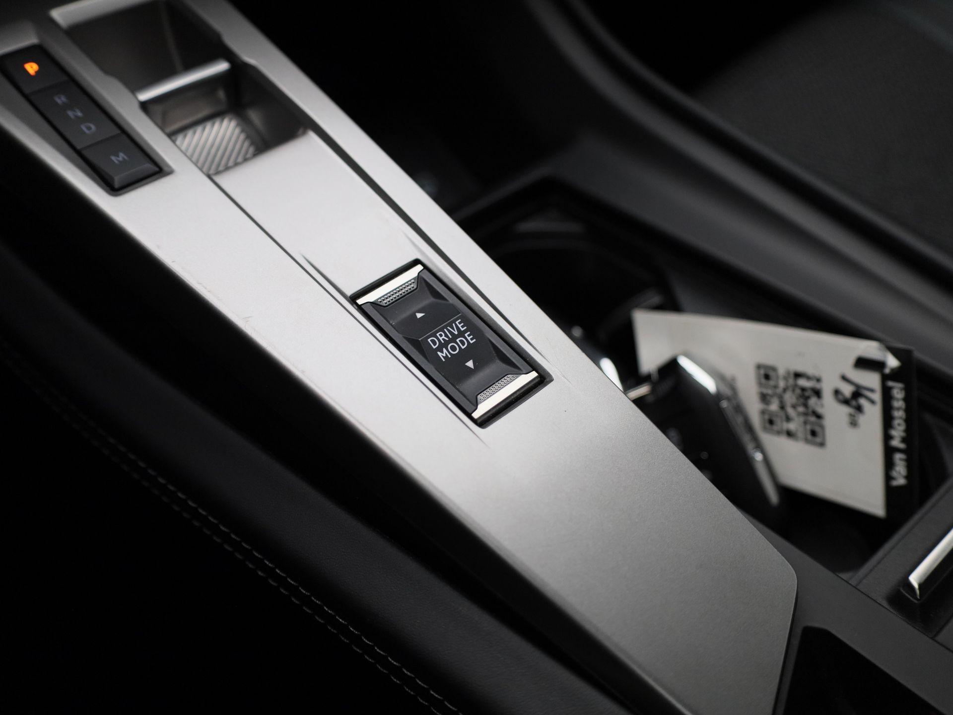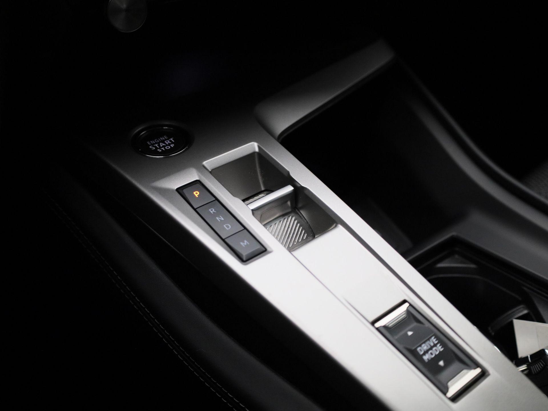 Luxe metalen afwerking op de centrale vloerconsole en geen
