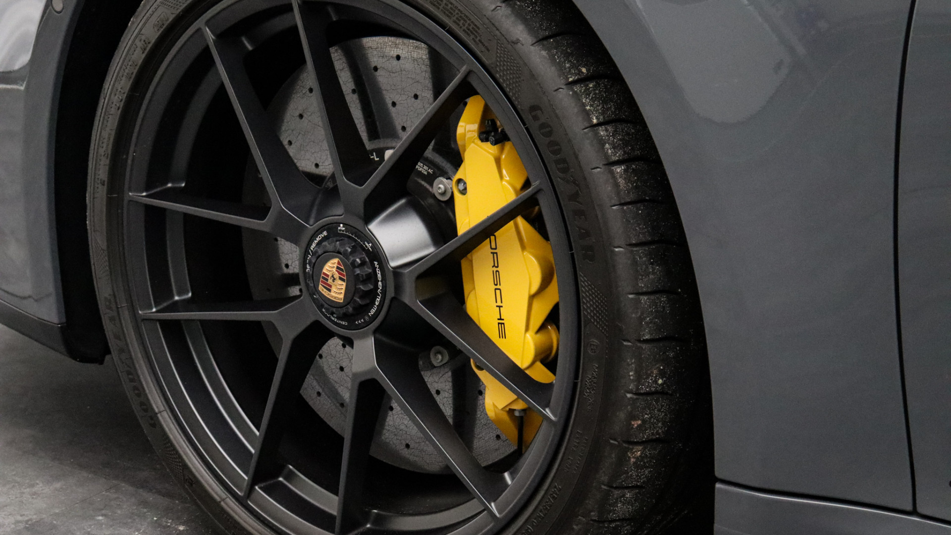 Porsche Ceramic Composite Brake (PCCB) met remzadels geel