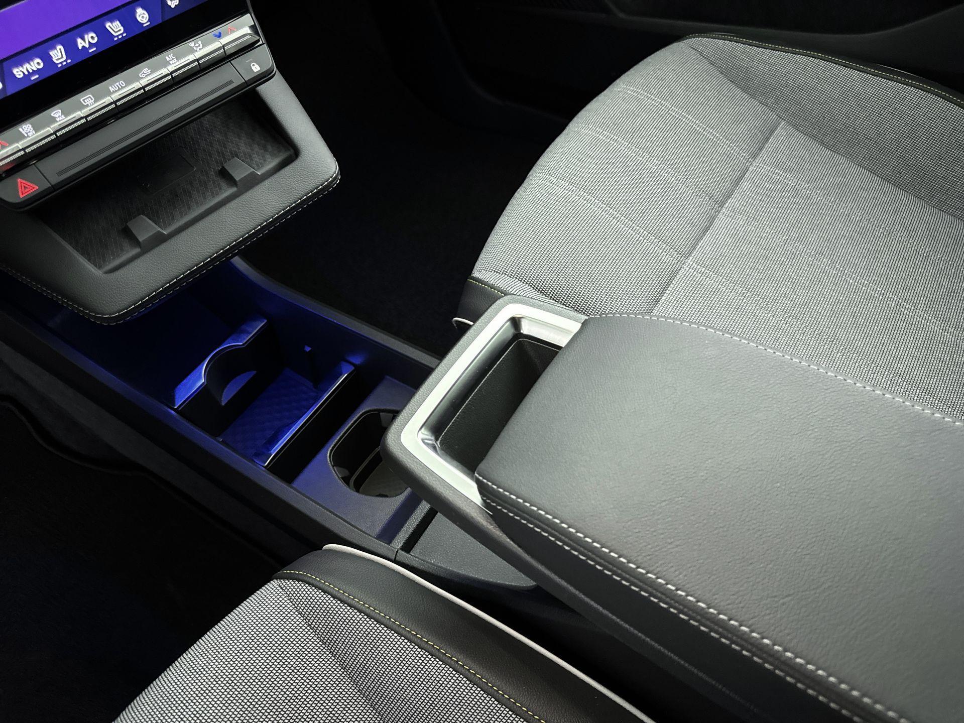 Hoge middenconsole met verstelbare armsteum, afsluitbaar opbergvak en bekerhouder (SLCCA)