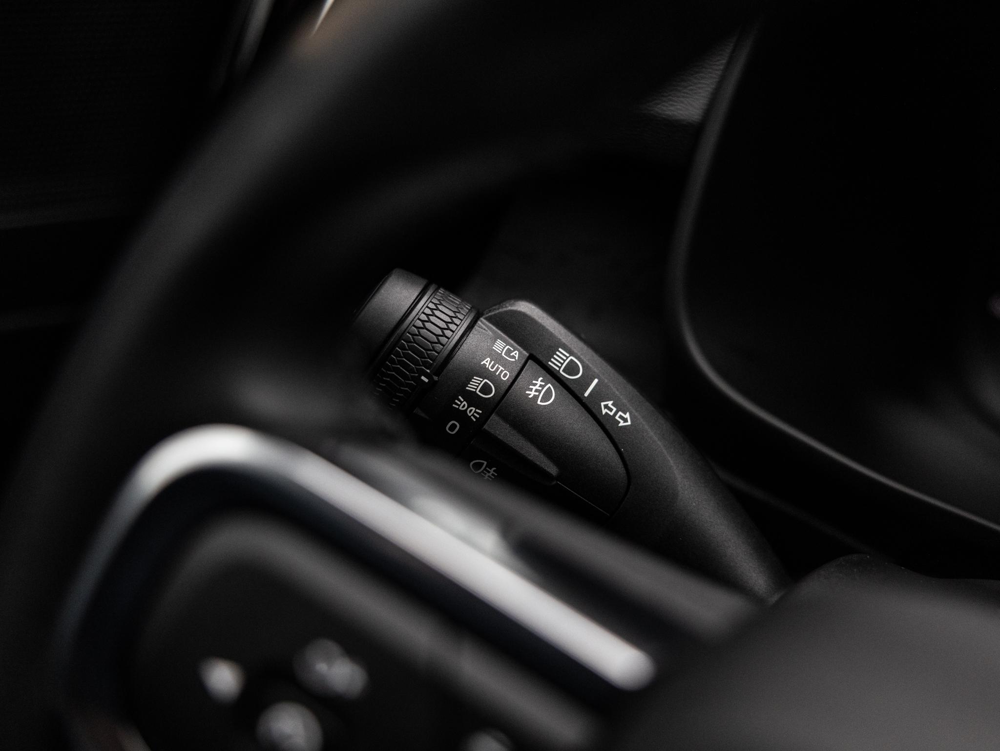 Luxe lederen afwerking op de pookknop, piano-zwart, lichtmetalen afwerking op de deuren, lichtmetale